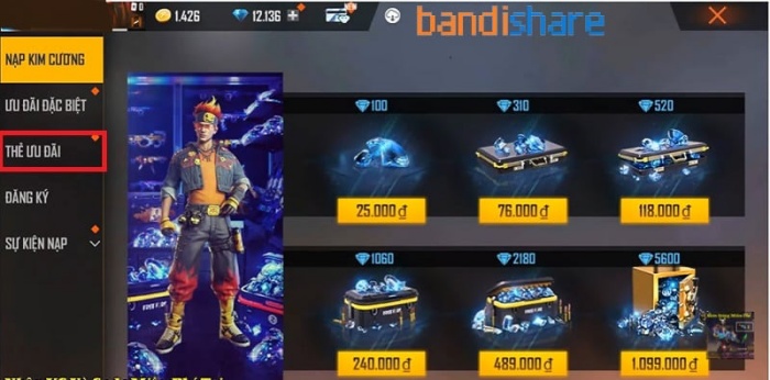Bước 2: Sau đó, tại giao diện chính của game, ấn chọn Thẻ Ưu đãi.