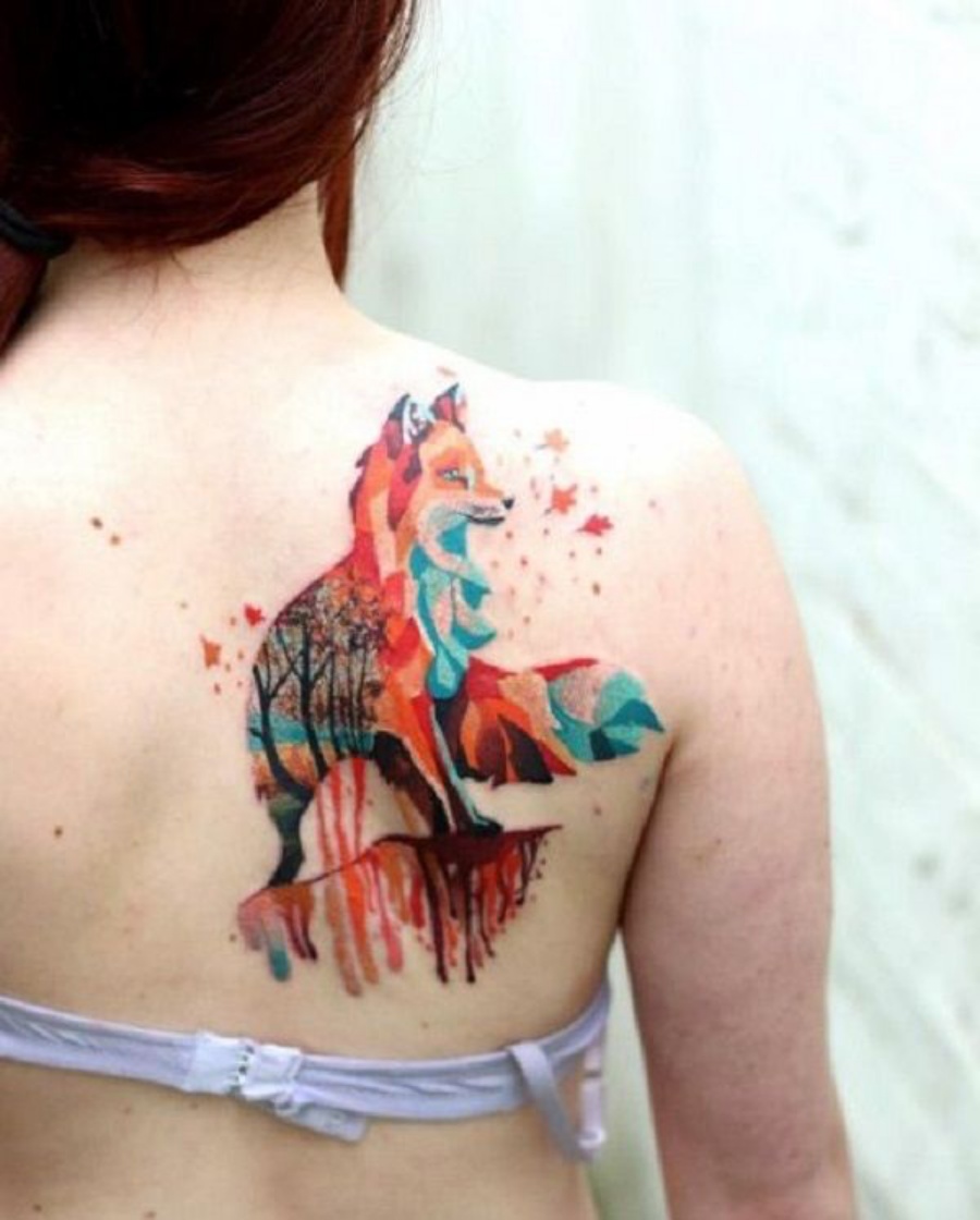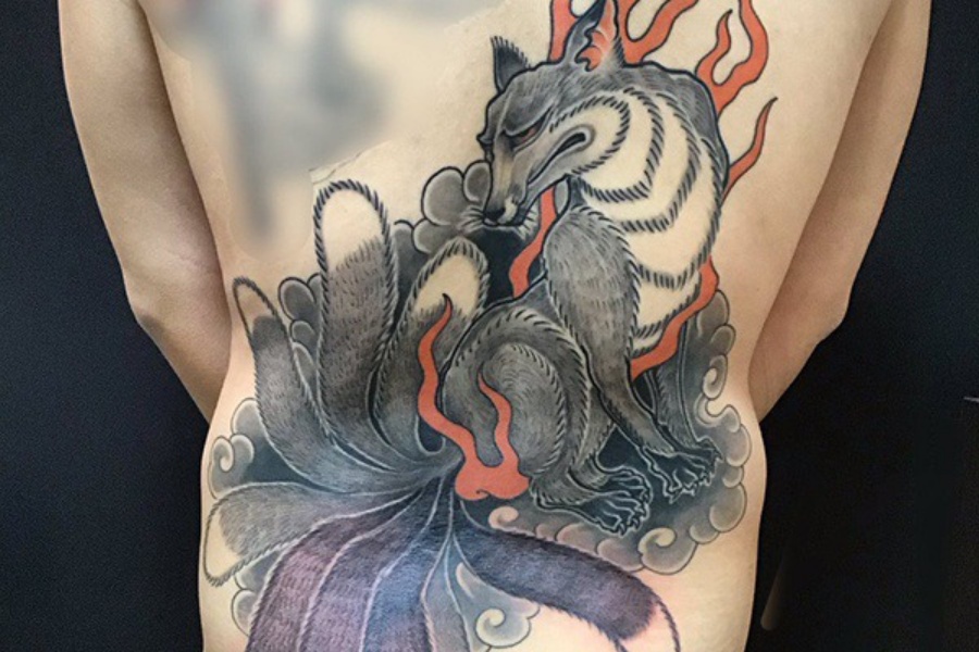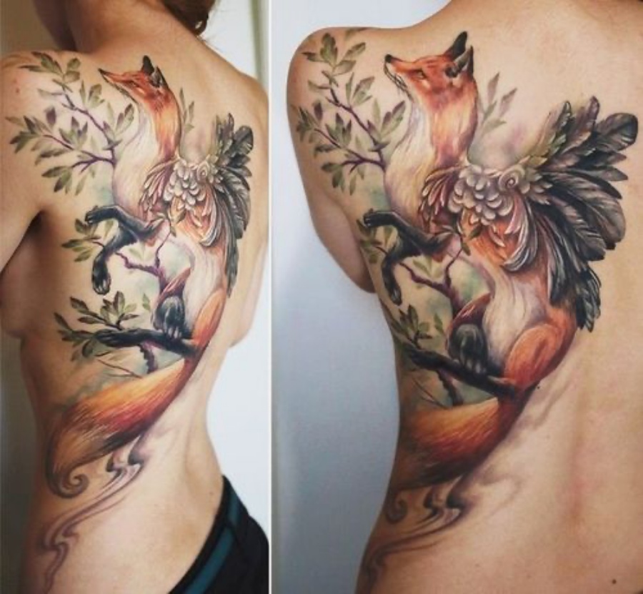 Nếu như bạn yêu nghệ thuật xăm hình và thích hình xăm con cáo thì hãy thử xăm ohias sau lưng với kích thước lớn. Hình xăm này có thể kết hợp với trăng, cây cỏ để tạo nên một bức tranh tuyệt vời sau lưng bạn.