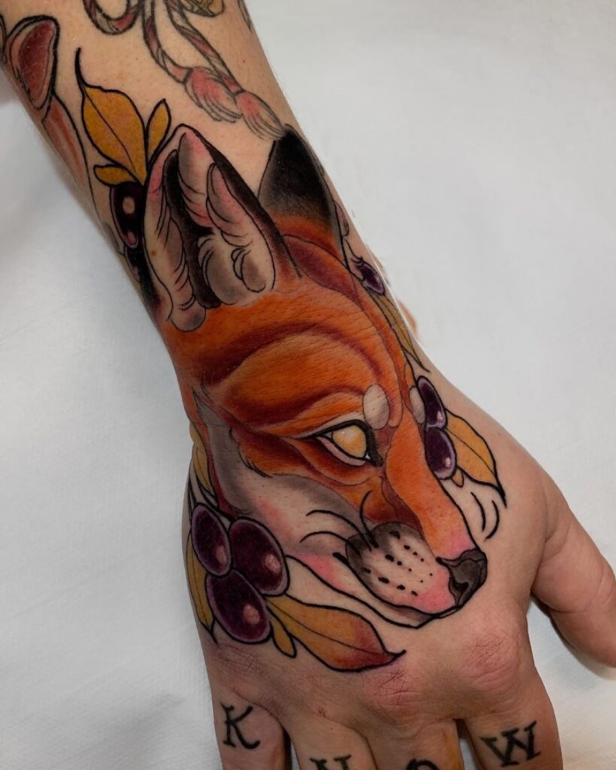 Ngoài bắp tay, cánh tay thì cổ tay cũng là một vị trí xăm hình con cáo hoàn hảo. Những hình xăm con cáo ở cổ tay luôn tạo nên giá trị thẩm mỹ tốt cùng hình ảnh con cáo đầy thông minh, lanh lợi. Cùng chiêm ngưỡng một số mẫu hình xăm con cáo ở cổ tay độc đáo sau.