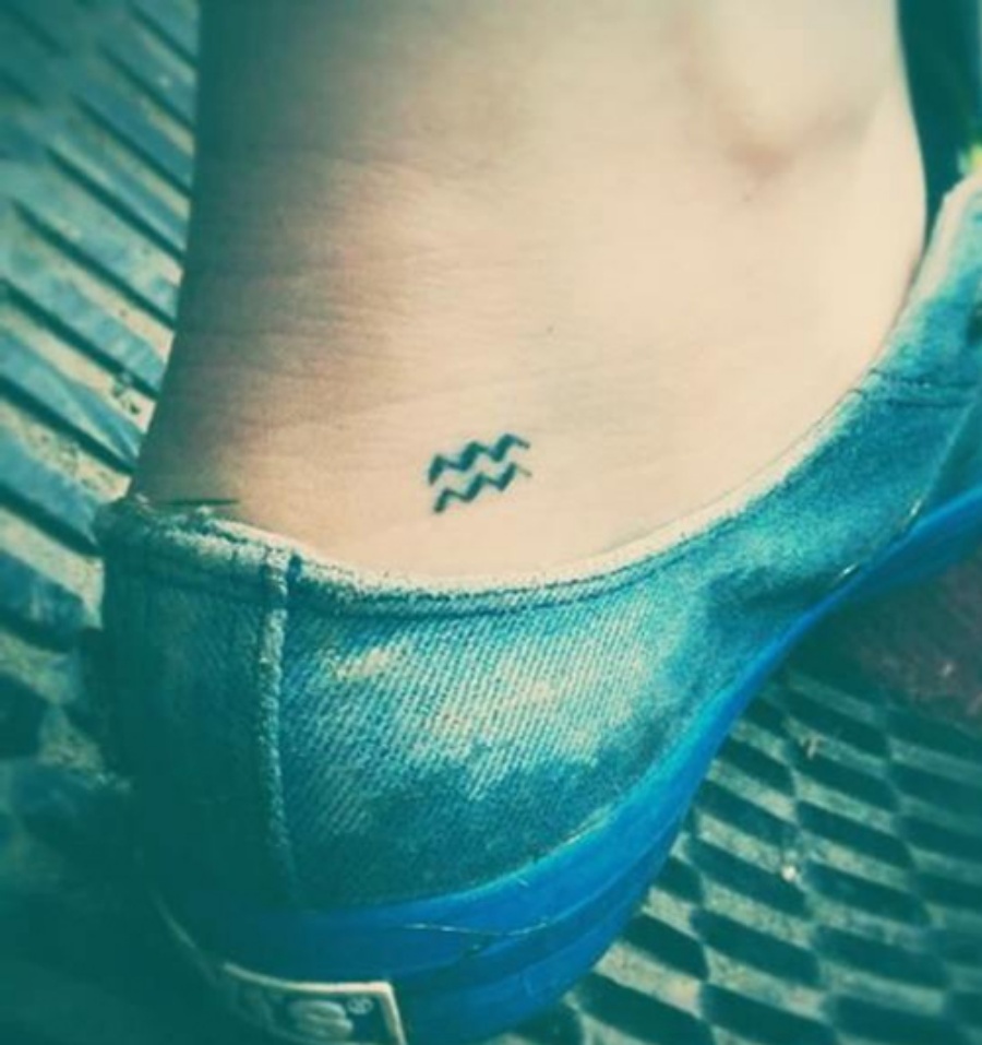 - Hình xăm chữ biểu tượng Aquarius hay nữ thần mini tại cánh tay, ngực, vai đều rất phù hợp với các bạn nữ.