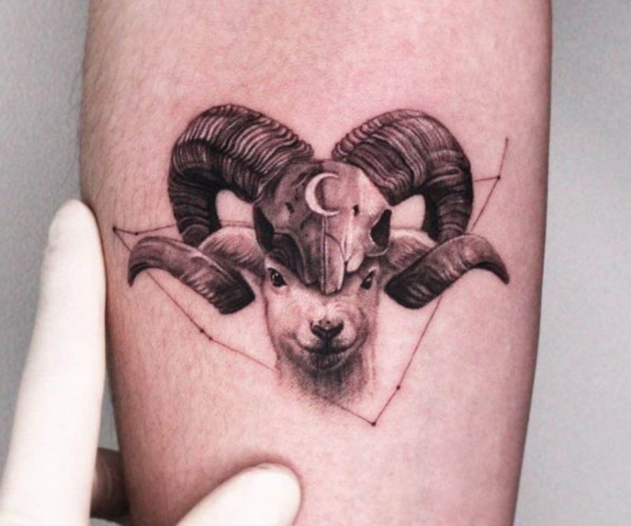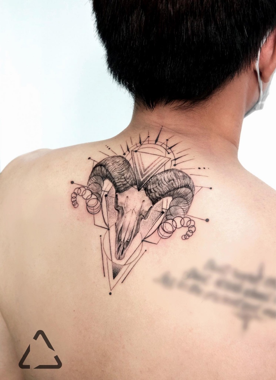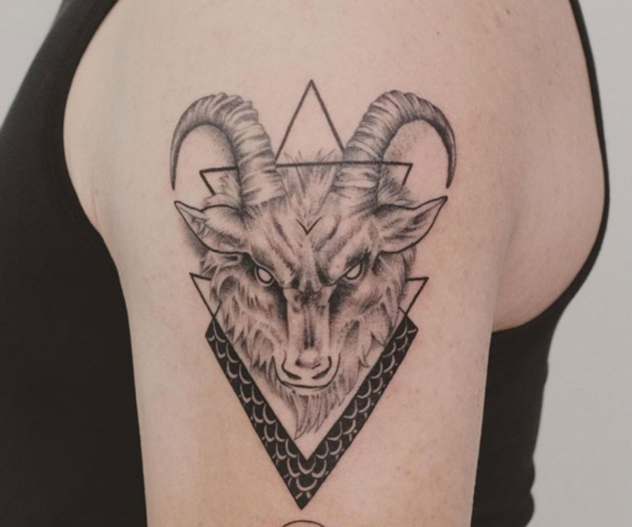 Đa số các bạn thuộc cung Ma Kết thường sẽ xăm hình đầu dê đi kèm với đó là các hình họa tiết hình học. Phổ biến nhất đó là hình tam giác. Khi nhìn vào hình xăm chúng ta sẽ thấy được sự bí ẩn và khác biệt. Nó biểu trưng cho sự bao bọc và không bao giờ bị chi phối bởi các yếu tố bên ngoài.