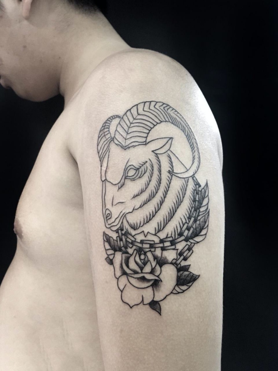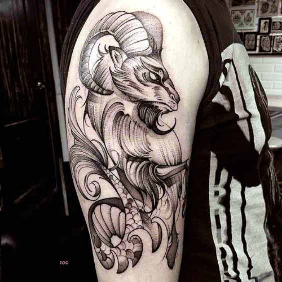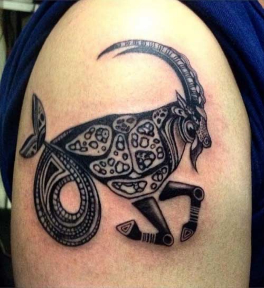 Bạn có thể xăm hình đầu dê và phía thân sẽ là các họa tiết hoa văn khác biệt. Như một biểu tượng của cung hoàng đạo Ma kết đang có nhiều khát vọng và ước mơ vươn cao hơn.