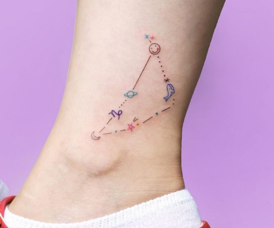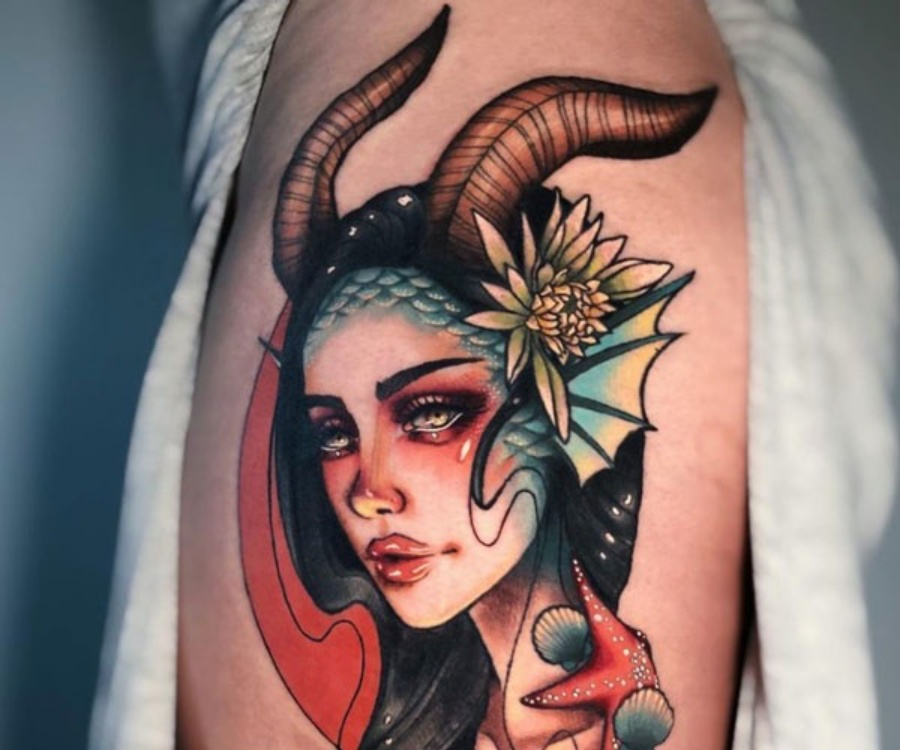 Những thiết kế hình xăm Ma Kết nữ, thường chú trọng tới sự tinh tế với màu sắc bắt mắt, thu hút. Bạn có thể tự do lựa chọn hình xăm cung Ma Kết kết hợp với hình chòm sao, người cá, dê,...để tạo ra một hình xăm độc đáo.