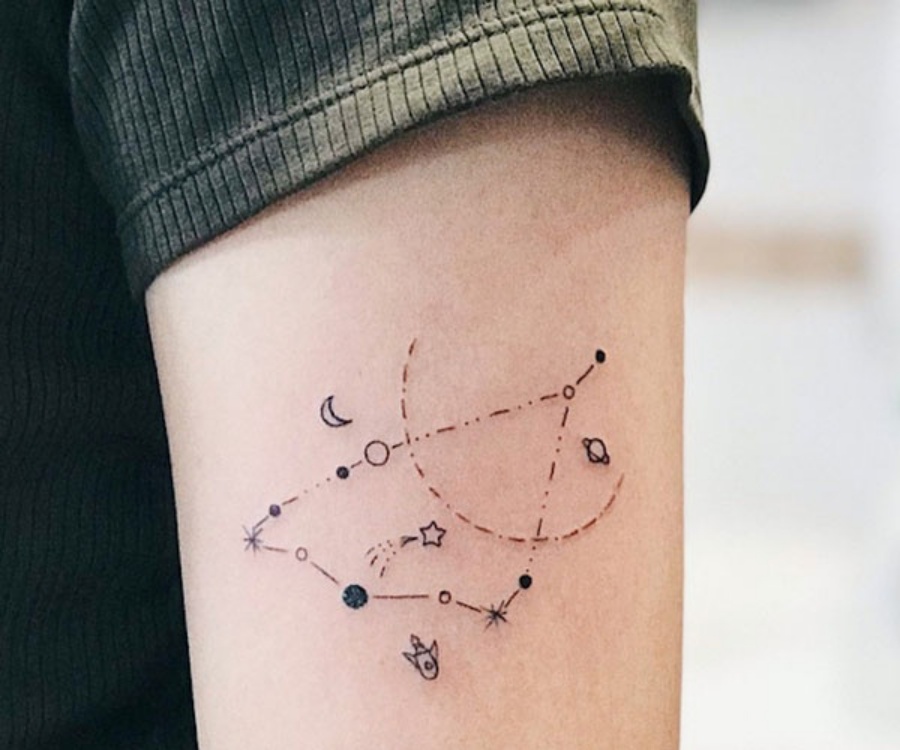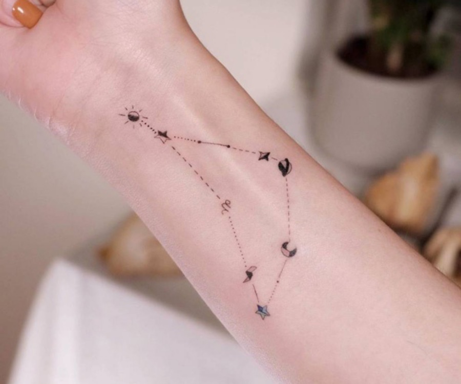 Hãy kèm theo những chòm sao nhỏ xung quanh cung hoàng đạo Ma Kết để hình xăm trở nên tuyệt đẹp hơn và quyến rũ hơn. Hình xăm này sẽ thích hợp hơn với nhiều bạn nữ tuổi teen.