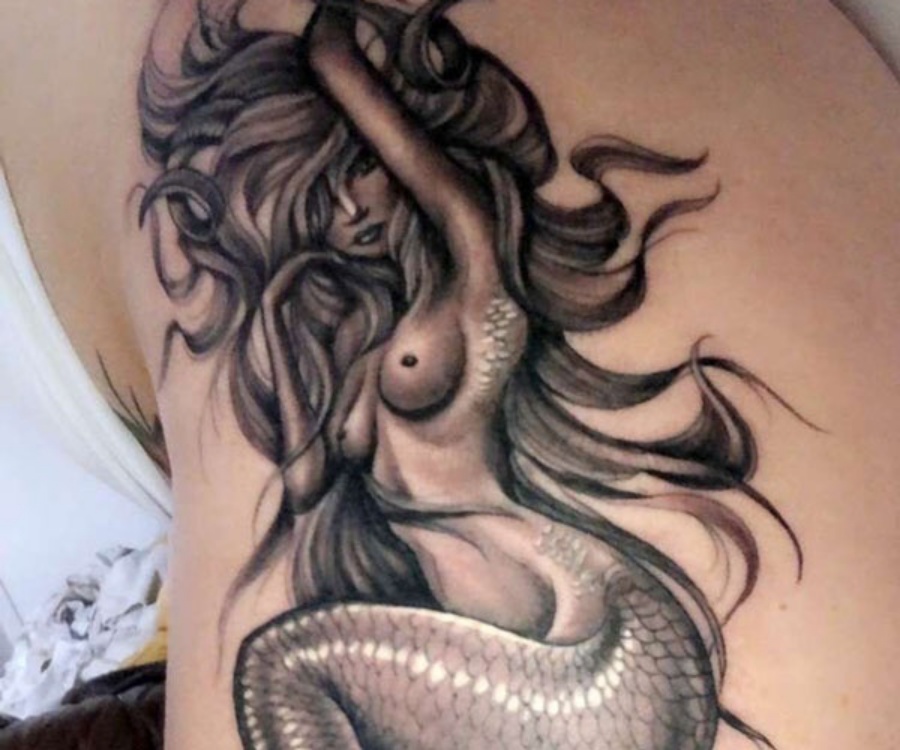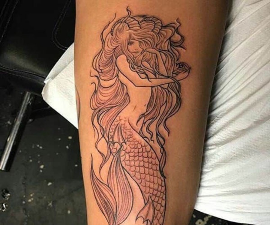 Một trong những hình xăm cực kỳ cuốn hút và thích hợp cho cung Ma Kết đó chính là cô gái người cá. Hình xăm tái hiện hình ảnh cô gái có đuôi là cá khát khao và nhiều hy vọng. Những giá trị mà hình xăm mang lại chỉ có chủ nhật là người mới có thể cảm nhận được.