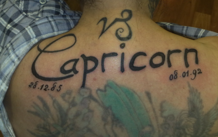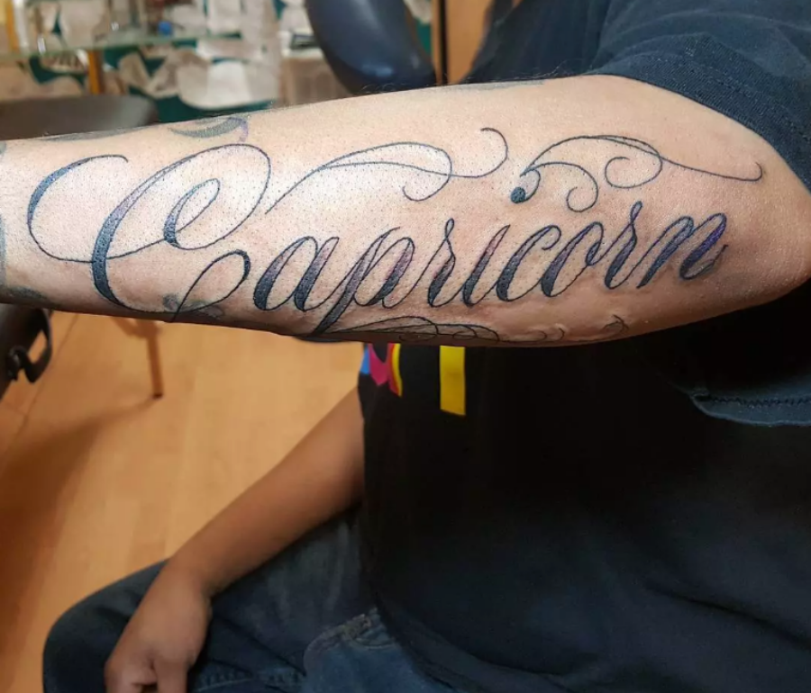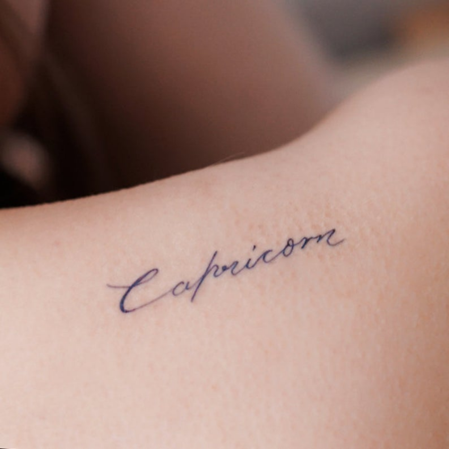 Nếu như bạn không thích hình ảnh cung Ma Kết thì cũng có thể viết chữ cung Ma Kết bằng tiếng Anh là Capricorn. Hình xăm này có thể xăm ở bất cứ vị trí nào bạn muốn. Có thể ở sau lưng, trên cánh tay hoặc ở chân đều thích hợp.