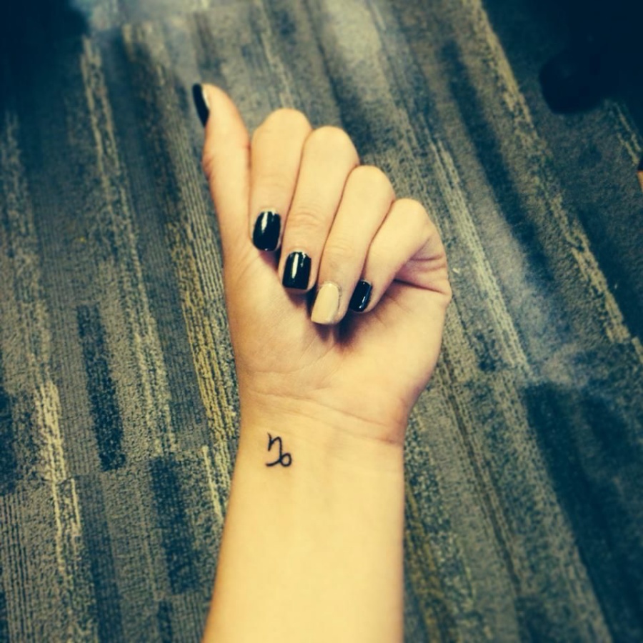 Tất nhiều không thể bỏ qua được ký hiệu của cung hoàng đạo Ma kết. Ký hiệu này rất đơn giản và bạn có thể thiết kế thêm hoa lá hoặc các họa tiết khác. Mặc dù hình xăm này khá đơn điệu nhưng lại ẩn chứa nhiều bí mật.