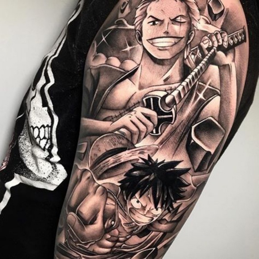 Bên cạnh Luffy, zoro cũng là một nhân vật được nhiều người yêu thích. Vì vậy, hình xăm Luffy cùng với zoro sẽ là lựa chọn phù hợp cho những người yêu thích cả 2 nhân vật này.