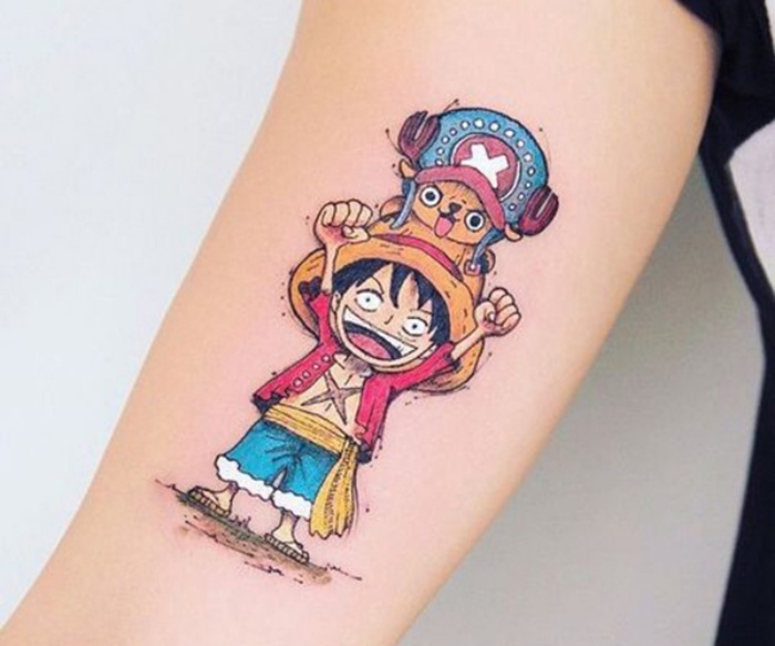 Trong câu chuyện này, Luffy là nhân vật đóng vai trò thuyền trưởng với hình ảnh cùng chiếc mũ rơm quen thuộc. Với sức mạnh và nhiều năng lực siêu nhân, băng mũ rơm đã vượt qua nhiều hành trình dài lênh đênh trên biển cùng những câu chuyện ly kỳ, tạo nên sức vang của truyện. Chính vì vậy, hình xăm Luffy đã trở nên quen thuộc với những người yêu thích hoạt hình, đặc biệt là hoạt hình và truyện nhật bản.