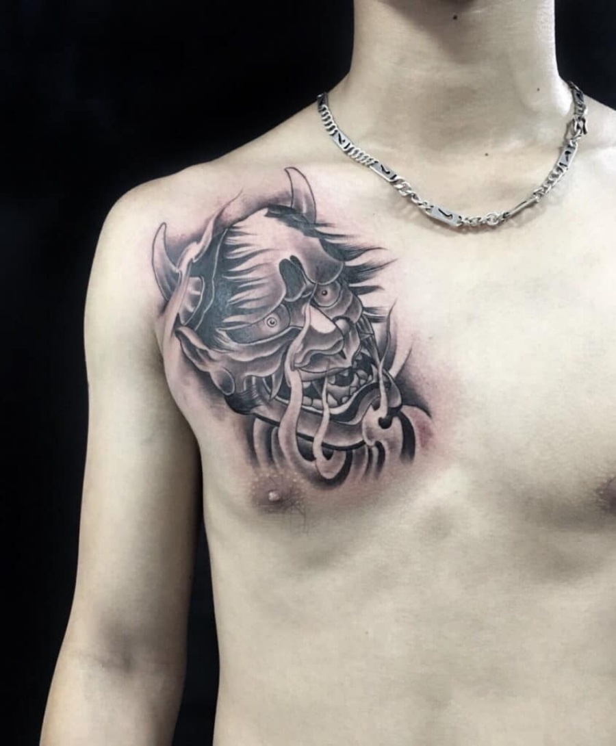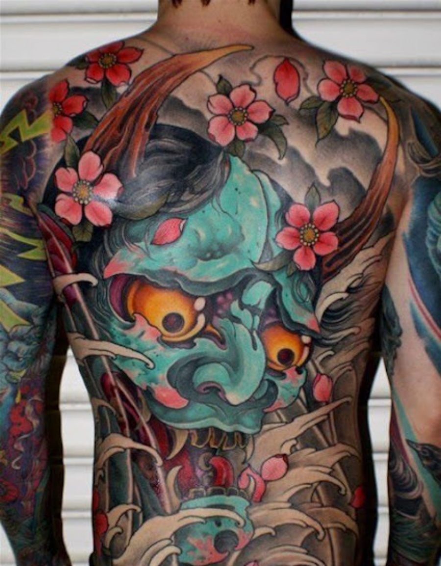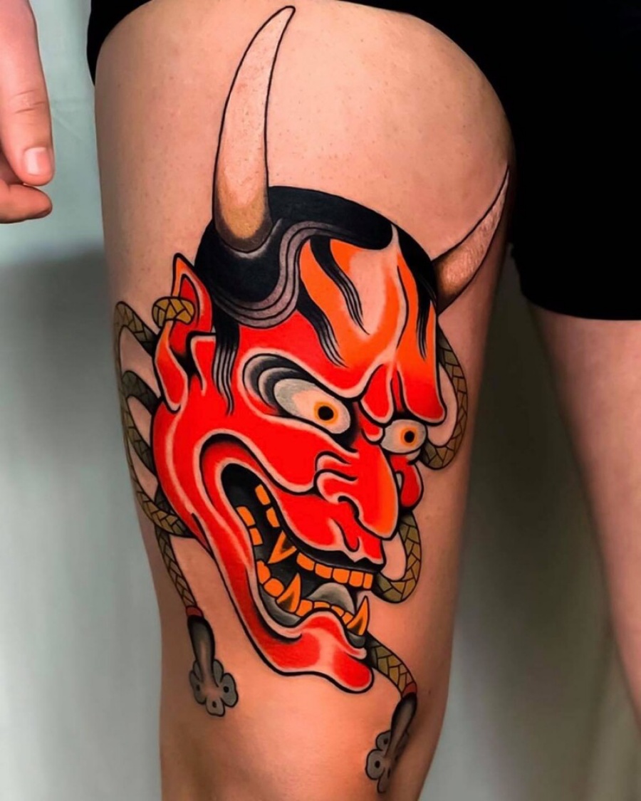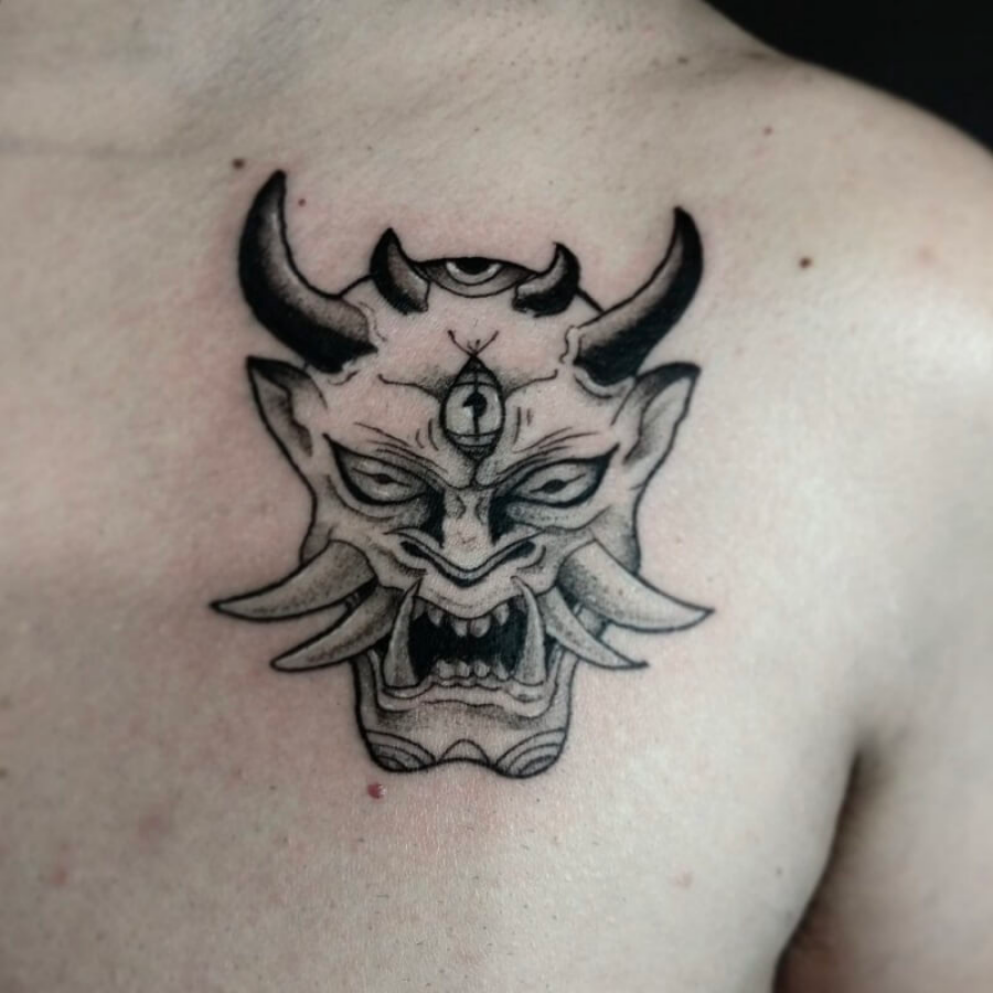 Xăm mặt quỷ là một trong những mẫu hình xăm xuất hiện phổ biến tại Nhật Bản. Khác với ý nghĩa không tốt đẹp, mẫu hình xăm này lại thể hiện sự tin tưởng của con người với tâm linh và tin tưởng tâm linh sẽ giúp đỡ, bảo vệ con người tránh khỏi khó khăn trong cuộc sống.