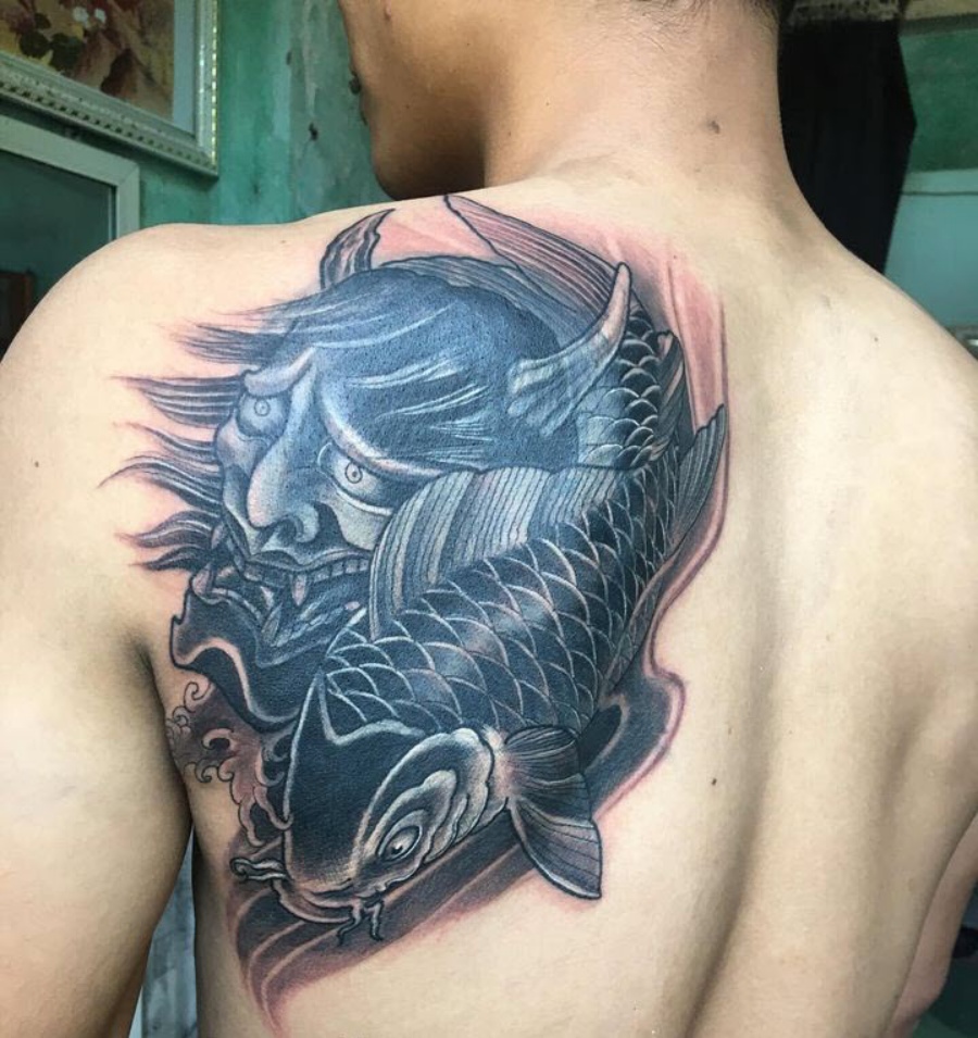 Đây là một mẫu hình xăm nhận được sự yêu thích của đông đảo khách xăm. Sự kết hợp thân cá chép với mặt quỷ sẽ đem lại sức hút mạnh mẽ cho hình xăm. Đồng thời, hình xăm này cũng có thể xăm ở nhiều vị trí trên cơ thể như lưng, bụng, tay…