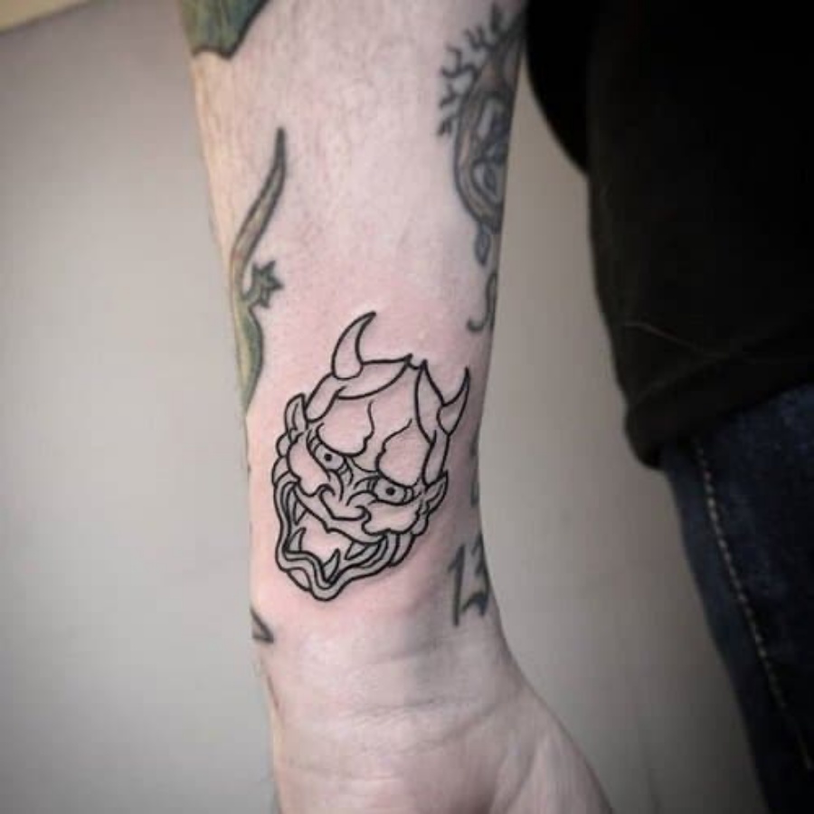 Ở vị trí cổ tay và mu bàn tay, bạn có thể lựa chọn những mẫu hình xăm mặt quỷ nhỏ hoặc mặt quỷ vòng qua cổ tay. Thông thường, tay chính là vị trí thể hiện được phần cá tính mạnh mẽ của đàn ông. Vì vậy, hình xăm này sẽ thể hiện được cá tính của bạn với người nhìn.