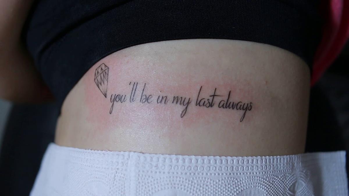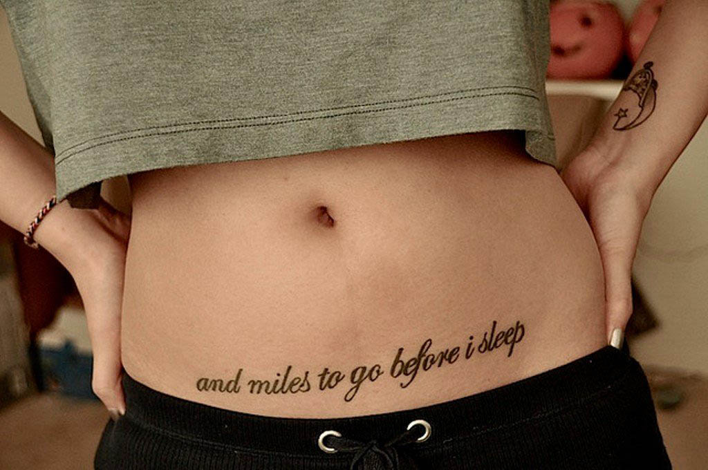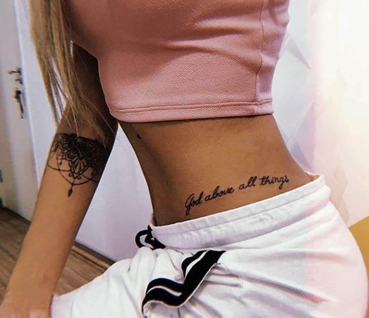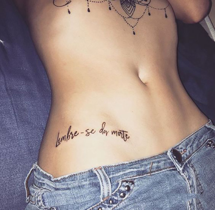 10. Hình xăm chữ ở hông eo cho nữ