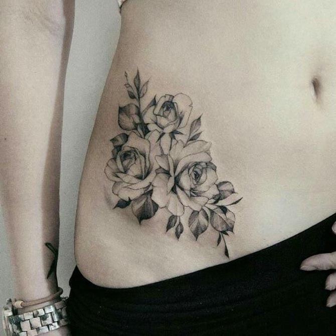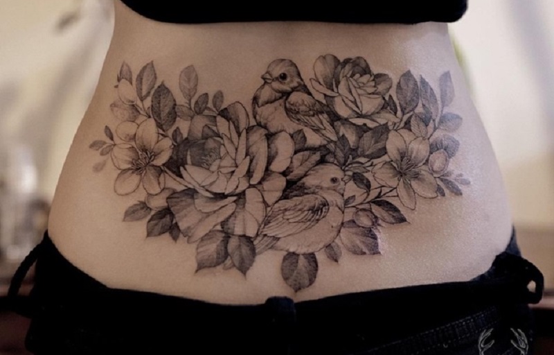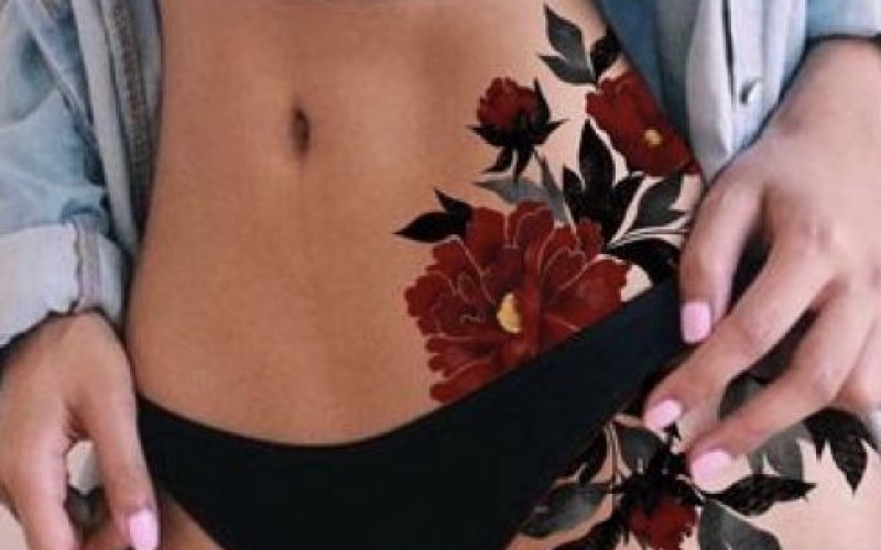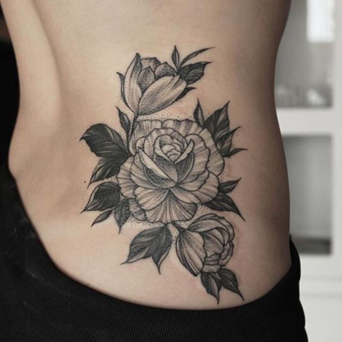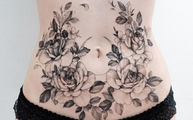 Có rất nhiều loại hoa bạn có thể xăm ở vị trí eo như hoa hồng, hoa sen, hoa mẫu đơn. Ngoài hình xăm kèm theo màu sắc nổi bật thì bạn cũng có thể lựa chọn hình xăm hoa đen trắng cũng khá khác biệt.