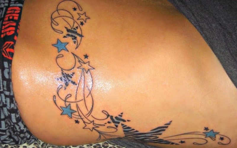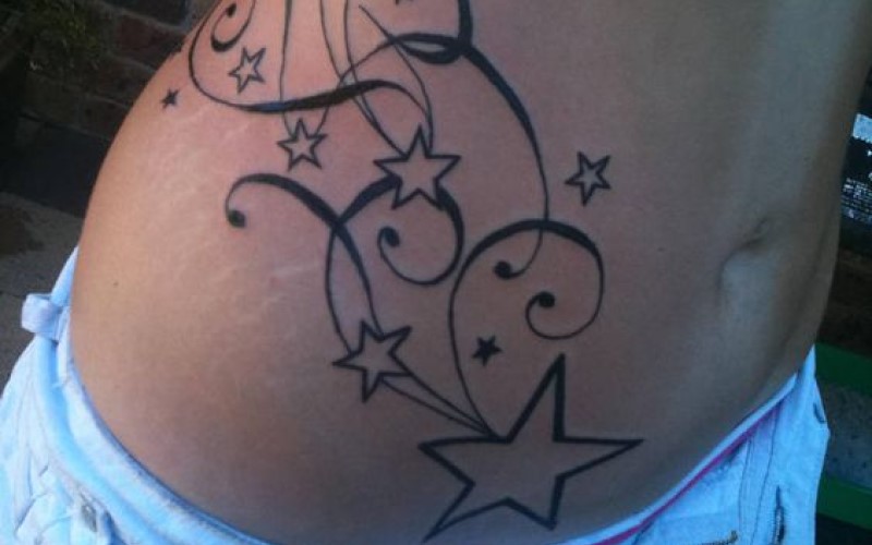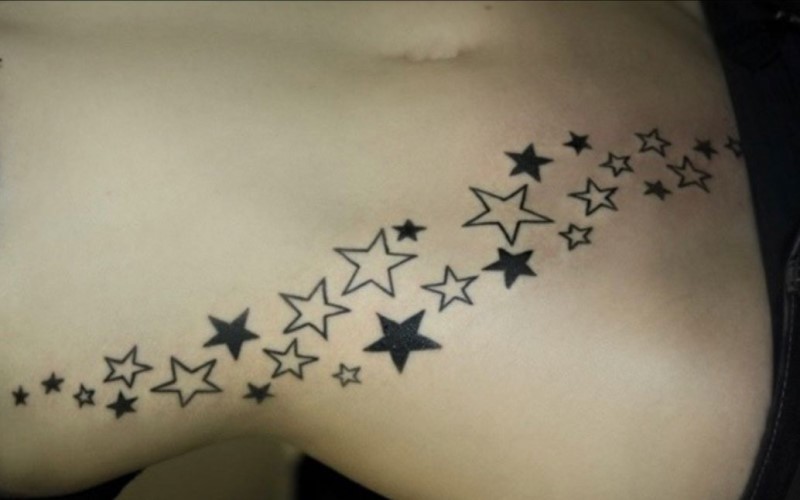 Nếu như bạn thích sự đơn giản, tinh tế hơn thì cũng có thể chọn hình xăm ngôi sao. Có thể là một ngôi sao to hay một chùm sao nhỏ chạy quanh phần eo của mình. Ngôi sao là biểu tượng của may mắn vì thế nhiều cô nàng còn thiết kế chòm sao theo cung hoàng đạo để khác biệt hơn và có ý nghĩa hơn.