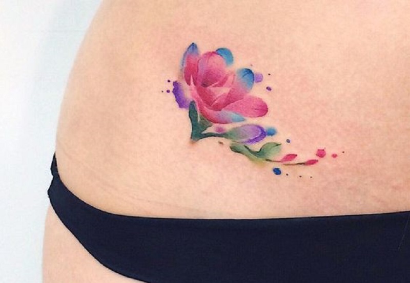 8. Hình xăm hoa ở eo cho nữ