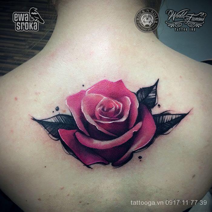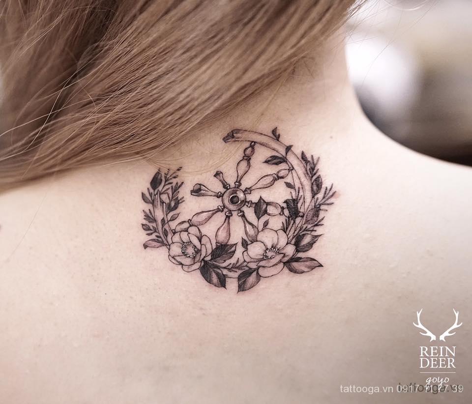 Vị trí xăm hình giữa sống lưng gần cổ là một trong những lựa chọn tạo nét quyến rũ, độc đáo cho các cô nàng cá tính. Vị trí này không gây đau nhiều như những vùng da mỏng, hơn nữa không để lộ hình xăm nếu như bạn muốn che giấu.