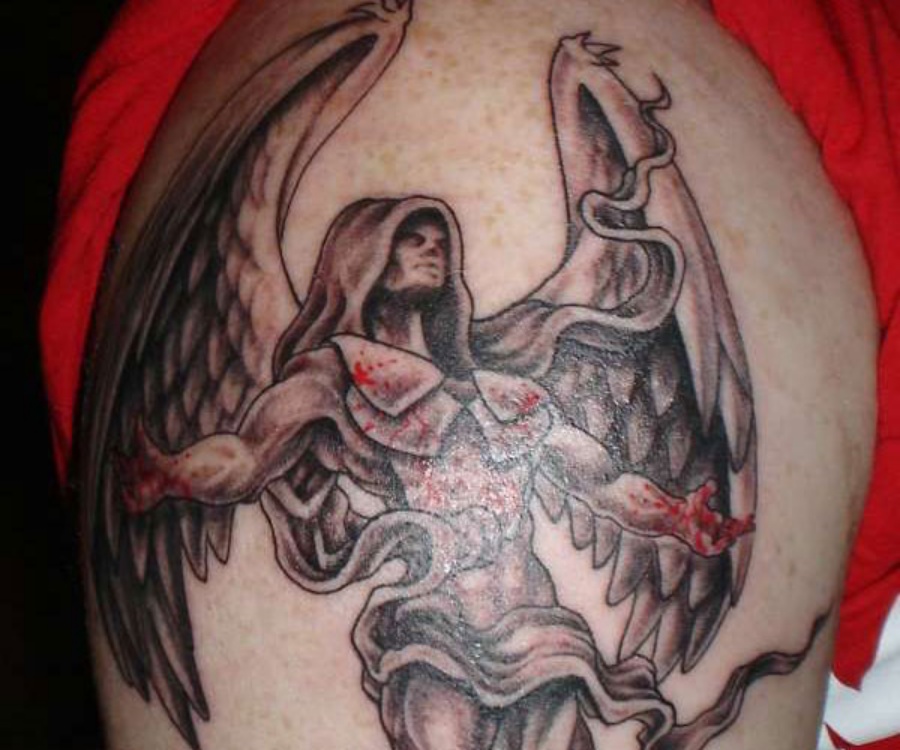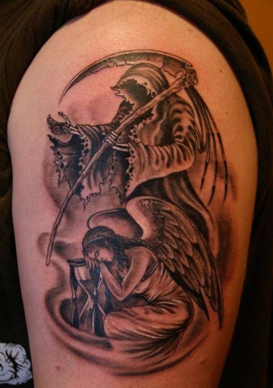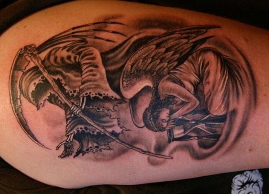 Hình ảnh thần chết mang theo đôi cánh thường thể hiện được cả mặt tốt, xấu, thiện ác của tâm can mỗi người. Vì vậy, việc lựa chọn hình xăm này thường mang ý nghĩa nhắc nhở bản thân phải biết đâu là giới hạn, không để chính mình chìm sâu vào trong bóng tối và tội ác. Hình ảnh thần chết và đôi cánh cũng mang hàm nghĩa giúp bạn luôn giữ được sự thiện lương và thuần khiết dù ở trong bất cứ hoàn cảnh nào.