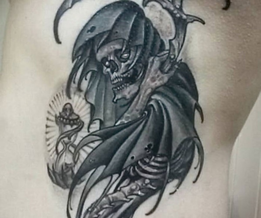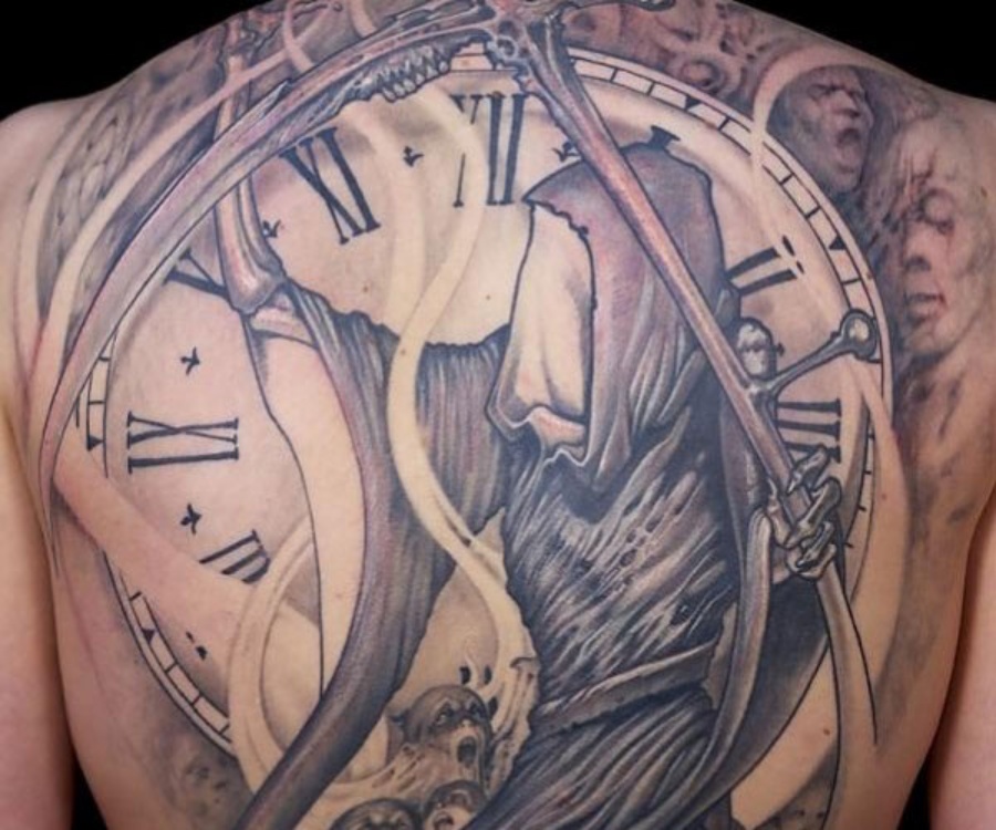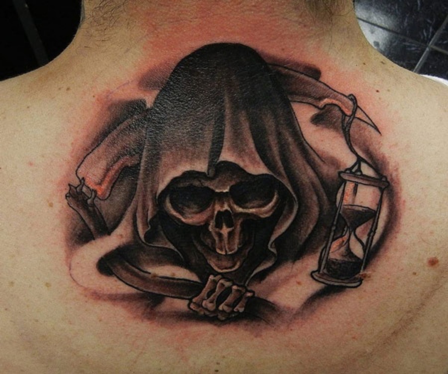 Mẫu hình xăm thần chết này thường mang ý nghĩa nhắc nhở bạn nên biết trân trọng thời gian, không được lãng phí bất cứ phút giây nào.