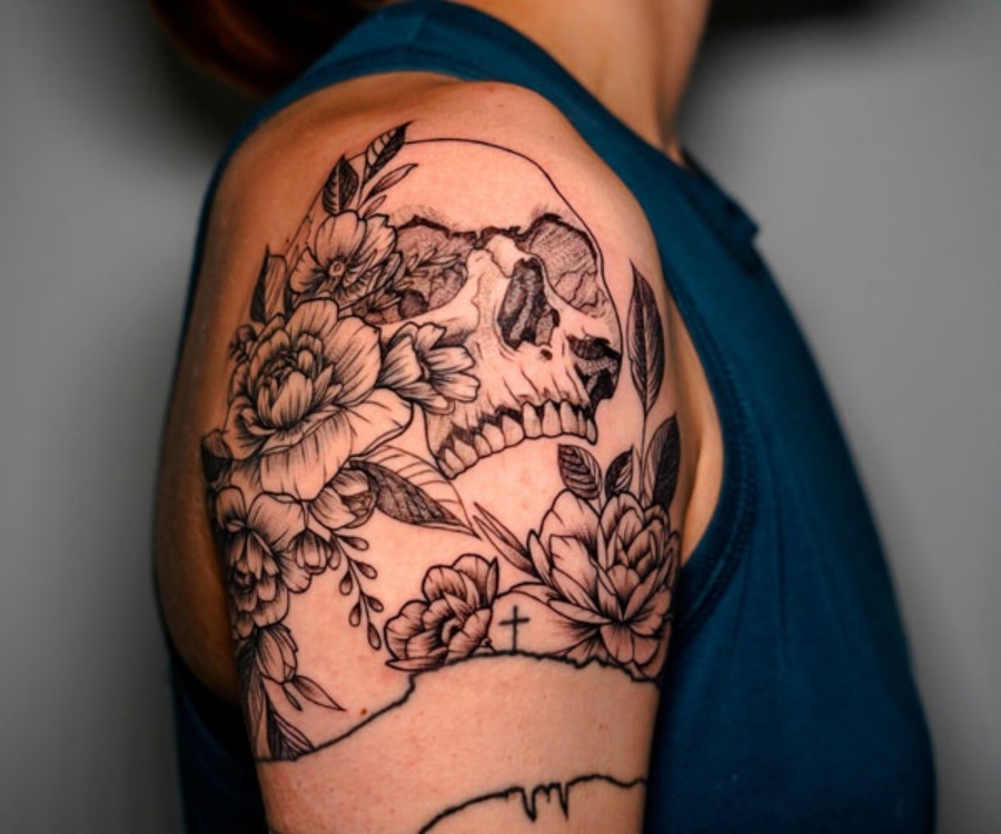 Mẫu hình xăm thần chết và hoa mini thường mang phong cách có phần lãng mạn và thể hiện ý nghĩa liên quan đến tình yêu cùng những điều tốt đẹp trong cuộc sống. Việc kết hợp giữa thần chết và những hóa hoa sẽ làm nổi bật sức sống mãnh liệt của con người, dù có khó khăn thì cũng luôn bền bỉ cố gắng và kiên trì, đứng trên khó khăn để được tỏa sáng.