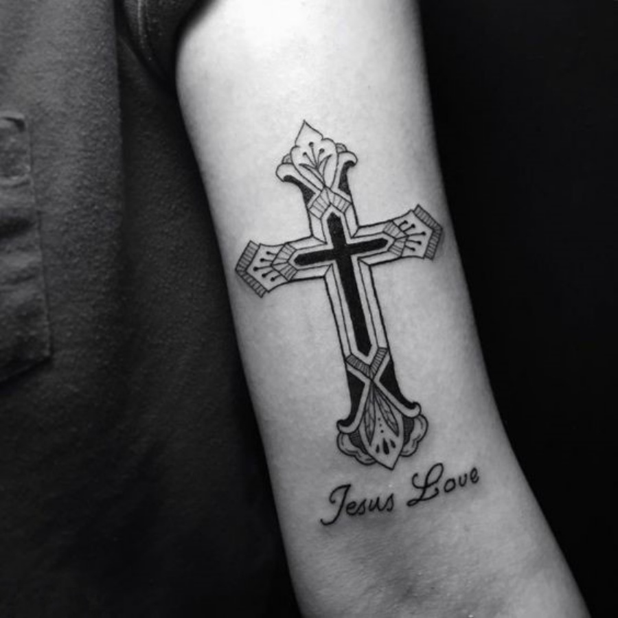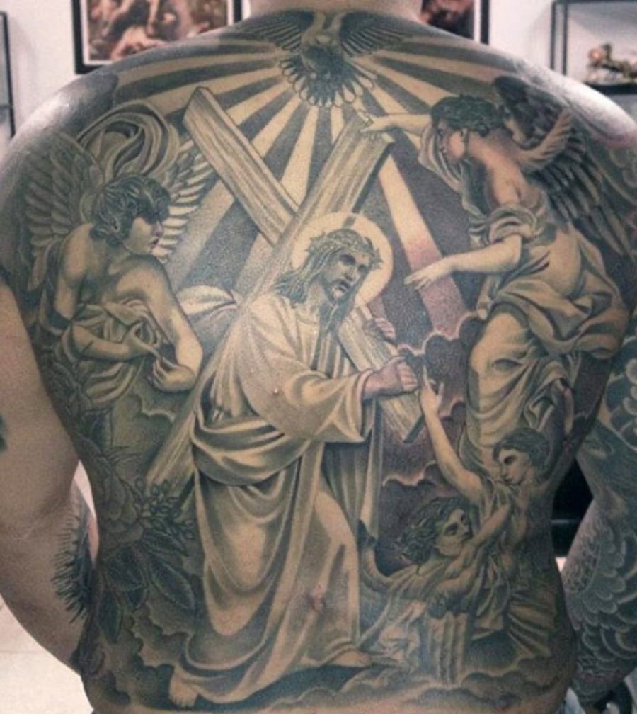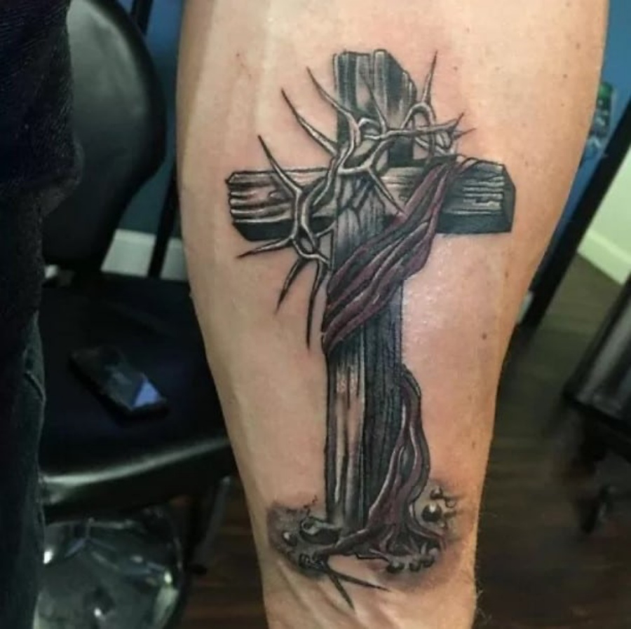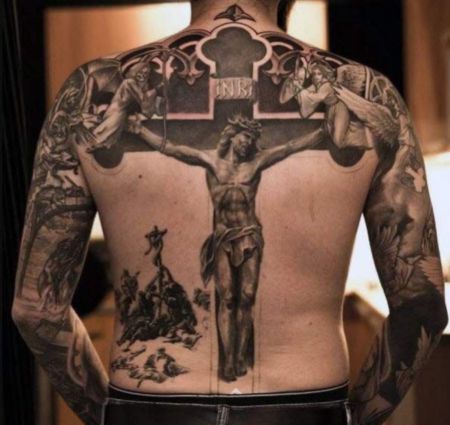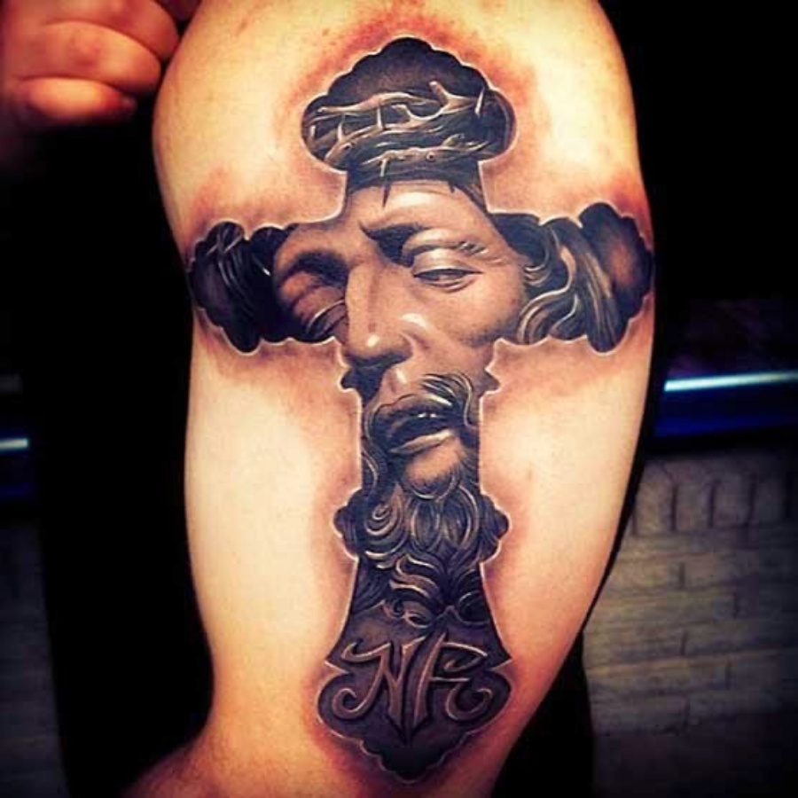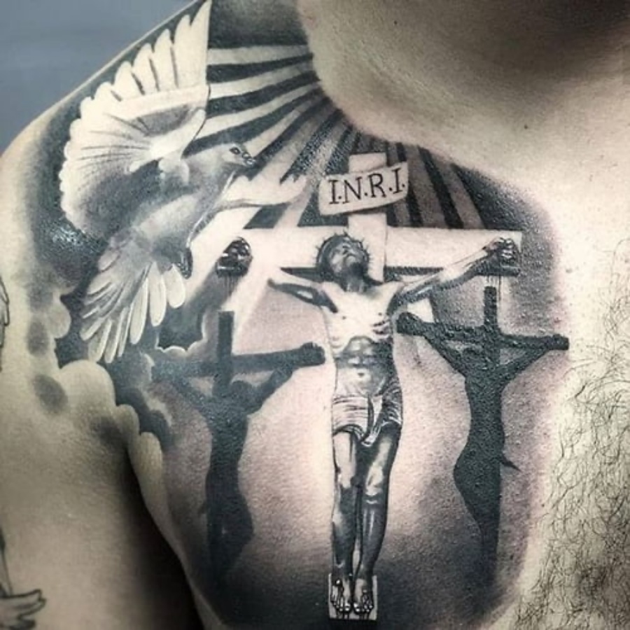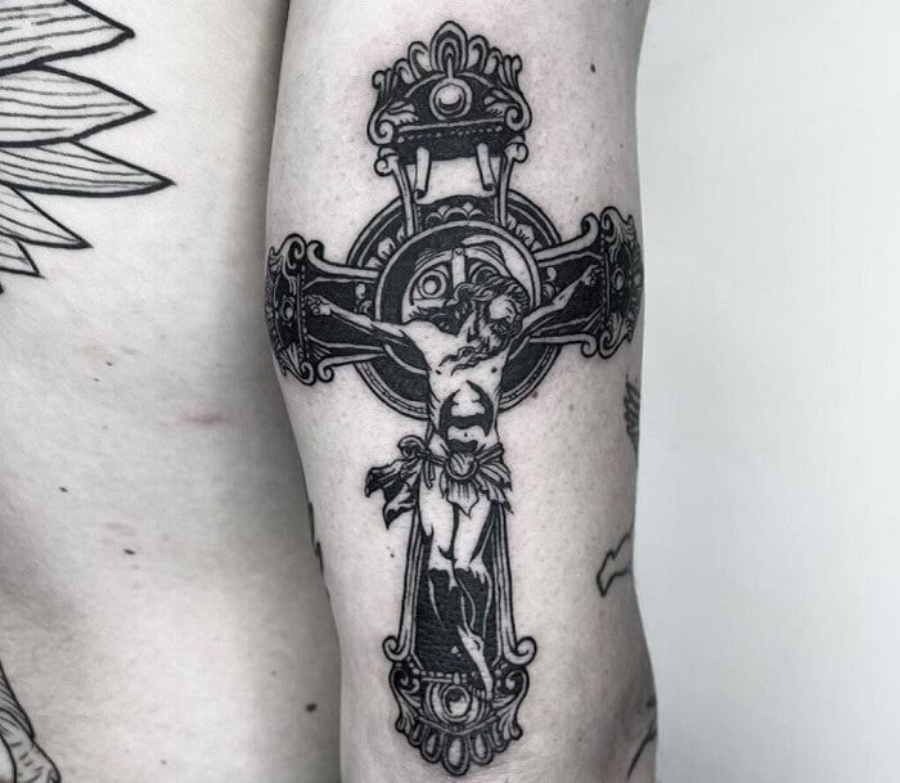 Chúa Jesus trên thánh giá cũng là một kiểu hình xăm được nhiều tín đồ yêu thích. Hình ảnh của Chúa cùng với thập giá là nguồn cảm hứng vô tận của các nghệ nhân xăm hình.