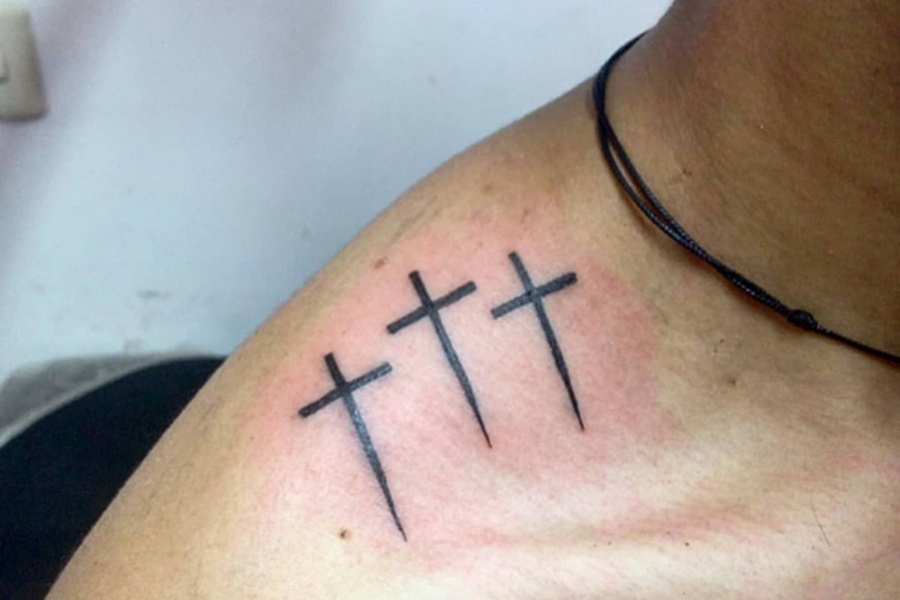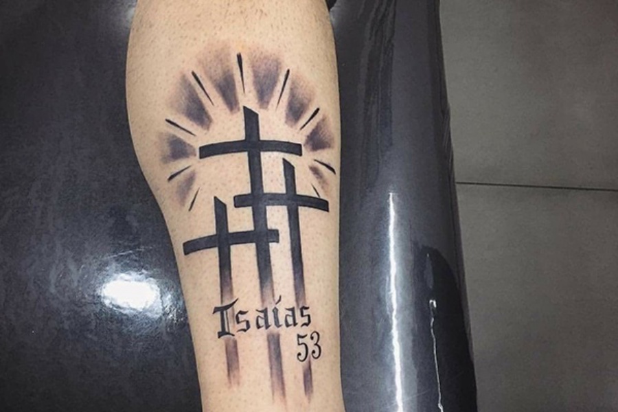 Hình xăm có 3 thánh giá thường mang ý nghĩa giữ vững tâm can, rửa sạch những tạp niệm và bảo toàn tính lương thiện trước mọi nghịch cảnh cuộc đời. Hình xăm như một “chiến binh” vực dậy tinh thần, dẫn đường chỉ lối giúp bản thân tỉnh ngộ, tìm đi lối tốt nhất và xua đuổi mọi điềm xấu.