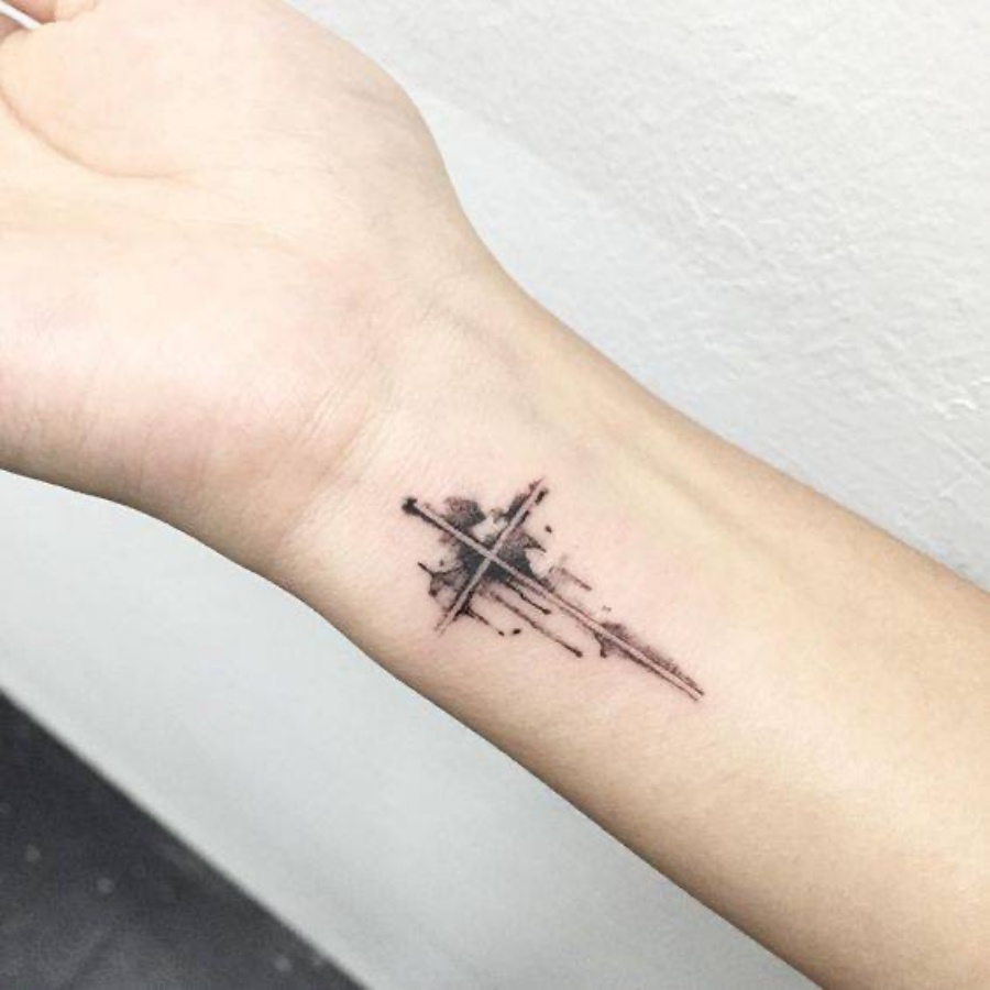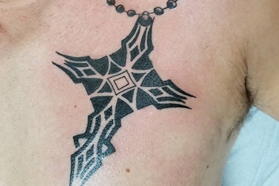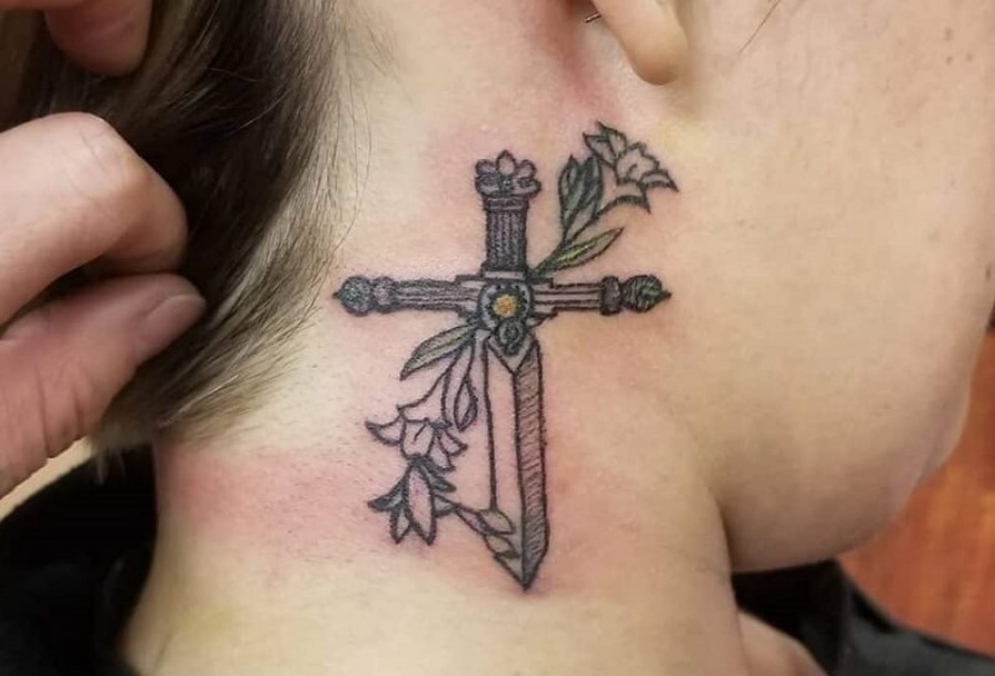 Đây là một loại hình xăm thánh giá độc đáo, cá tính nhưng lại có ít người biết đến nhất. Mẫu xăm này được thiết kế với sự kết hợp giữa 4 – 5 đầu mũi tên sắc nhọn và đuôi kiếm trên thánh giá.