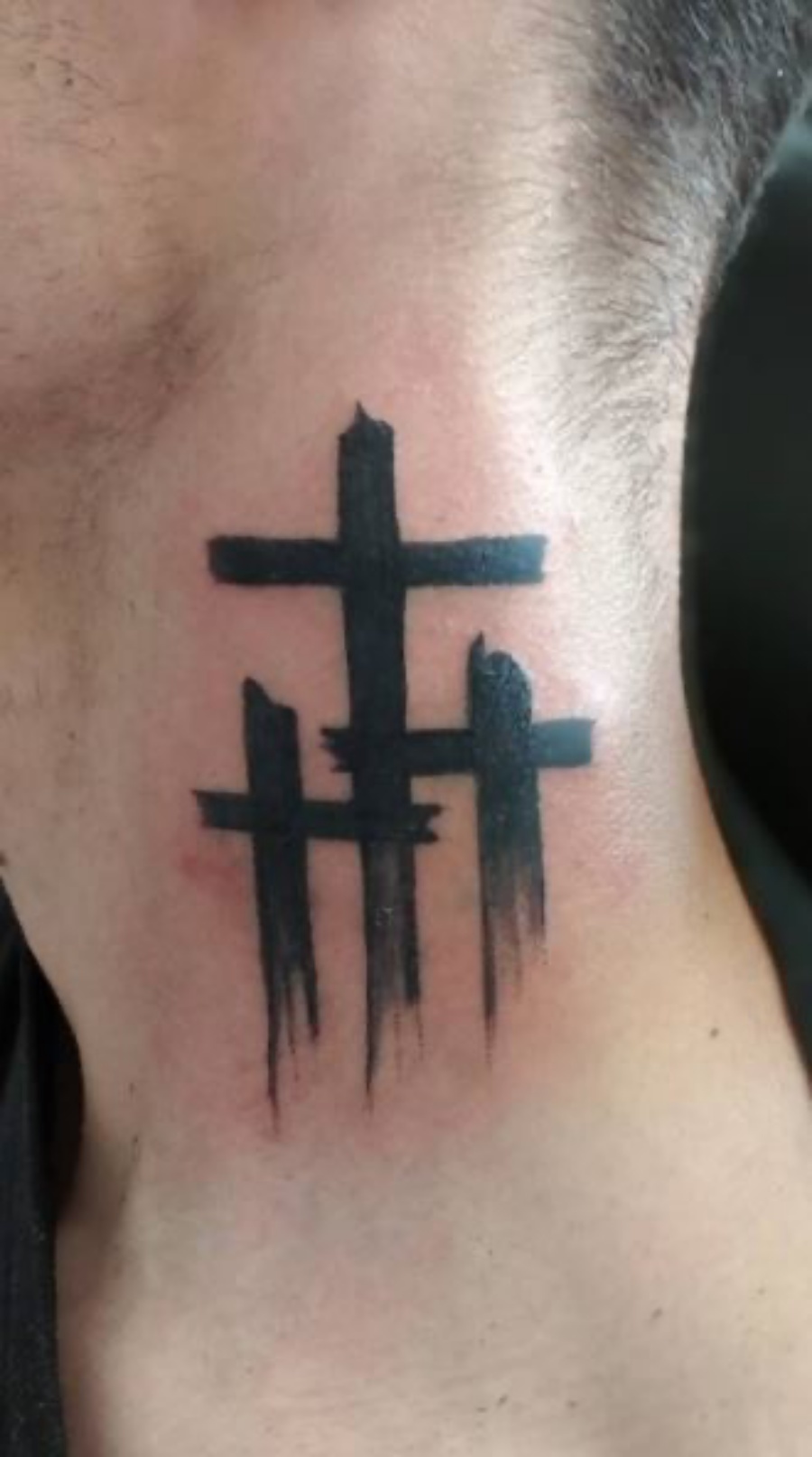 Hình xăm có 3 Thánh giá thường phù hợp với những người đang lạc lối, không biết làm gì để bước tiếp trong cuộc đời. Hình xăm này sẽ rất đẹp nếu bạn xăm dọc theo cổ, bắp tay hoặc ở vùng ngực.