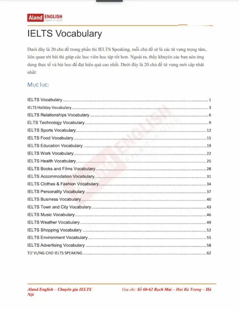 Nếu bạn có khả năng hãy mua sách IELTS Speaking Vocabulary gốc để ủng hộ tác giả, người dịch và Nhà Xuất Bản.