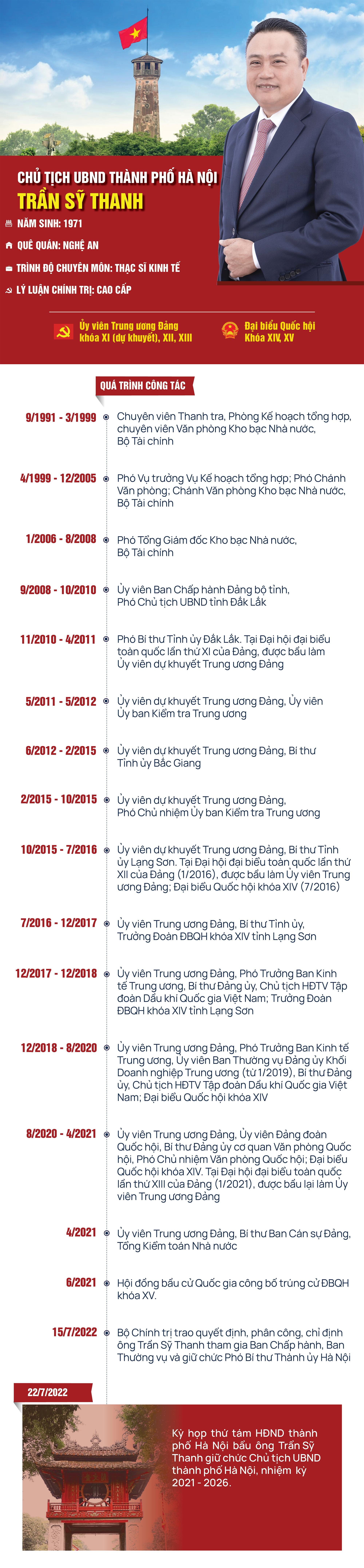 Chiều ngày 22/7/2022, Ông Trần Sỹ Thanh - phó bí thư Thành ủy Hà Nội - được HĐND TP Hà Nội bầu giữ chức vụ chủ tịch UBND TP Hà Nội nhiệm kỳ 2021-2026 tại kỳ họp thứ 8.