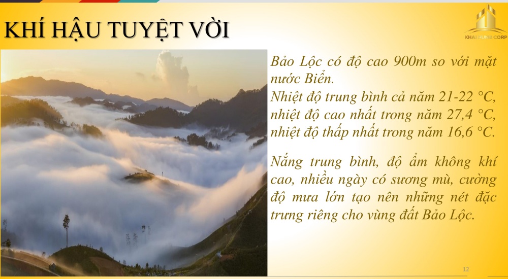 Nắng trung bình, độ ẩm không khí cao, nhiều ngày có sương mù, cường độ mưa lớn tạo nên những nét đặc trưng riêng cho vùng đất Bảo Lộc.