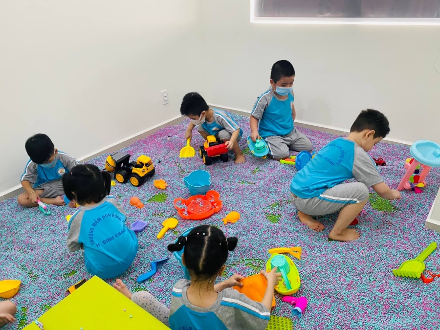 Đặc biệt, không gian được thiết kế theo phong cách biển xanh với các nhà liên hoàn và khu vực chơi tư duy sáng tạo riêng. Điều này thu hút các bé tò mò và ham học hỏi.