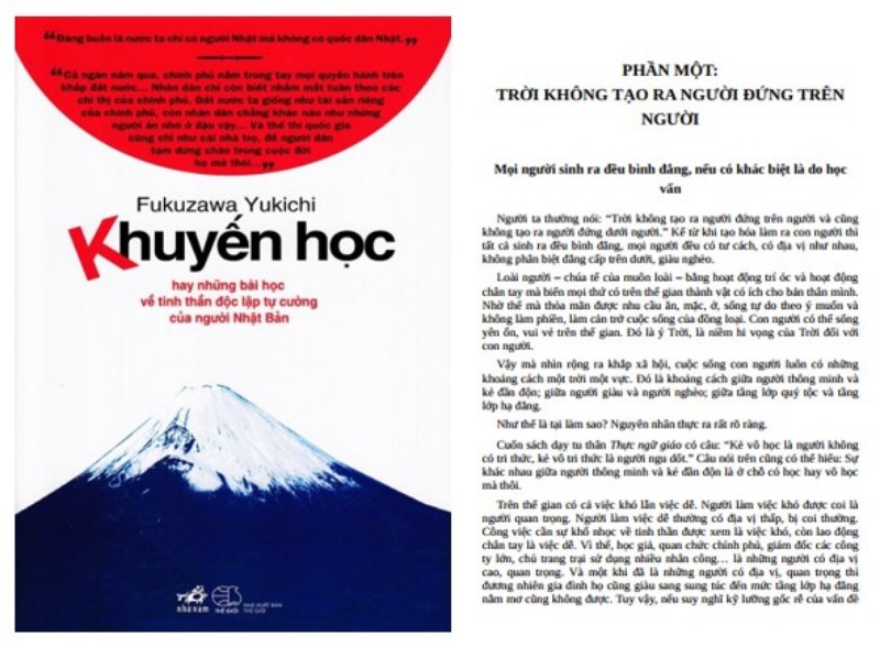 Tác giả: Fukuzawa Yukichi (tháng 1 năm 1835 - 3 tháng 2 năm 1901) là một trong những nhà tư tưởng lớn nhất của Nhật Bản cận đại. Ông được xem là người có công mở đầu phong trào canh tân nước Nhật, cổ động dân chúng trút bỏ tư duy lạc hậu thời cổ đại mà tiếp thu học thuật Tây phương để sánh bước với các nước Âu Mỹ. Fukuzawa Yukichi là nhà chính trị, nhà tư tưởng, nhà đấu tranh xã hội, nhà giáo dục tiên phong, nhà văn, nhà dịch thuật và là một võ sĩ.