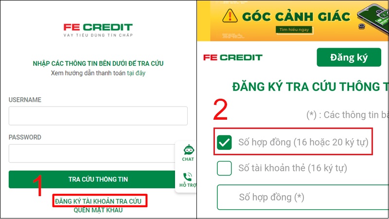 - Kiểm tra hợp đồng trả góp FE Credit qua website