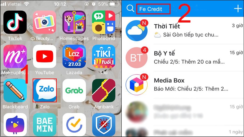 Bước 2: Tiếp theo, bạn tra cứu thông tin hợp đồng FE Credit trên Zalo.