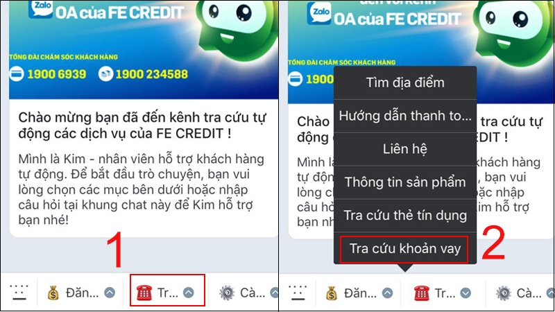 - Kiểm tra hợp đồng trả góp FE Credit qua Zalo