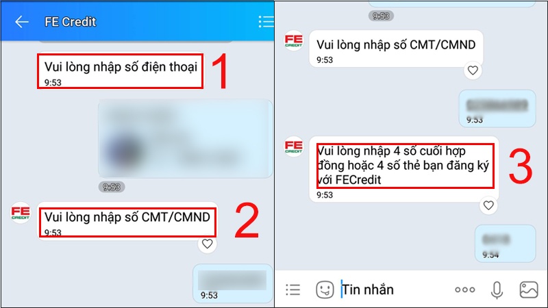 - Khách hàng phải sử dụng số điện thoại đã đăng ký với FE CREDIT để truy vấn thông tin.