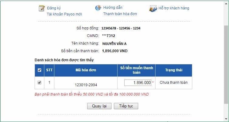 Bước 3: Cuối cùng, bạn xem thông tin thanh toán của hợp đồng là hoàn tất.