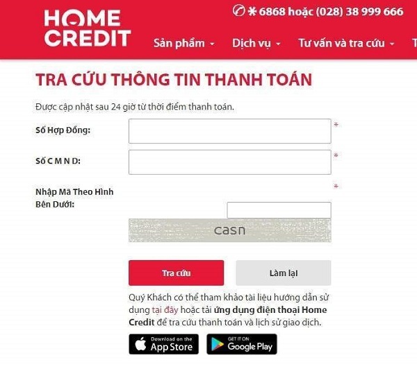 Home Credit là cũng là công ty tài chính có lượng hồ sơ khách hàng đông đảo, hồ sơ thủ tục vay cũng được thực hiện nhanh chóng. Đặc biệt, để có thể tra cứu hợp đồng trả góp Home Credit, khách hàng có thể thực hiện qua các cách sau: