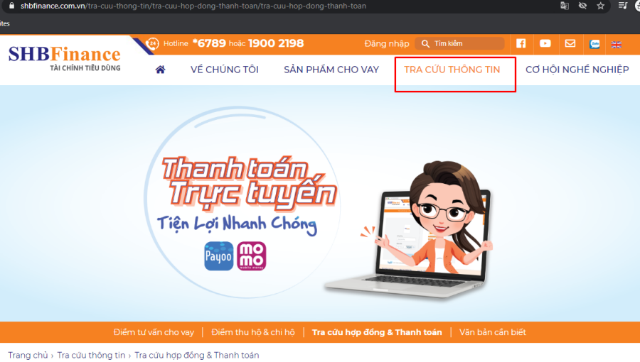 Bước 1: Đầu tiên, bạn hãy tra cứu qua số tổng đài SHB Finance qua hai số hotline *6789 hoặc 1900 2198.