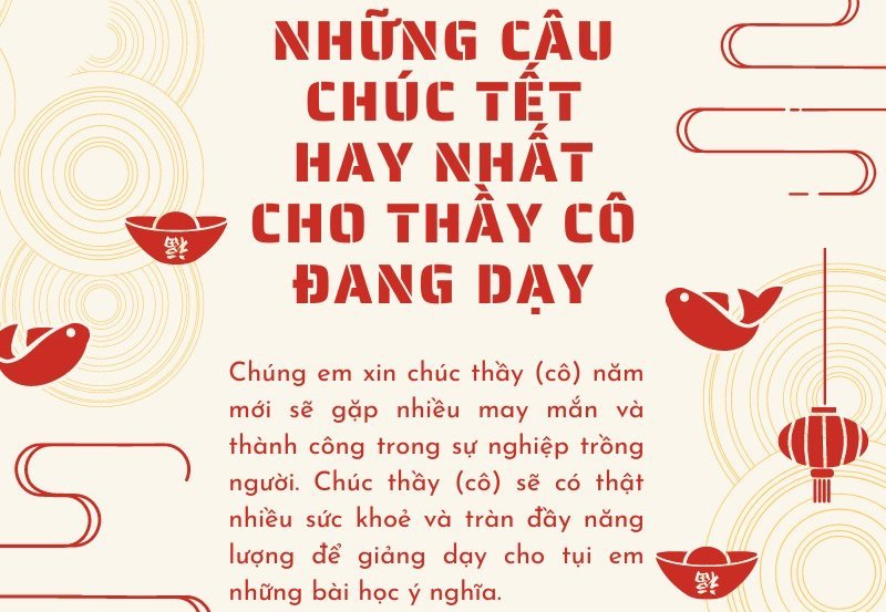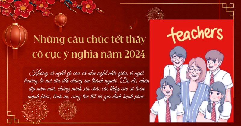 Ngày Tết là thời điểm lý tưởng để bày tỏ lòng biết ơn đối với thầy cô qua những lời chúc Tết 2024 ý nghĩa và độc đáo nhất. Hãy cùng tham khảo ngay dưới đây nhé!