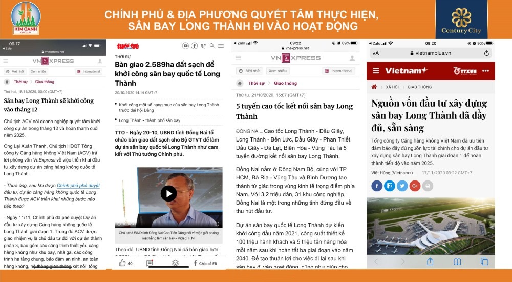 Đặc biệt trong Tháng 12, khởi công sân bay quốc tế Long Thành. Theo đó, chắc chắn giá trị bất động sản được hưởng lợi và giá sẽ tăng nhiệt lên nhiều lần. Đơn cư trong bán kính 1-5km giá đất dân từ 12 - 25 triệu/m2. Như vậy, Century City chỉ cách sân bay Quốc tế Long Thành chỉ 2km mà có giá 15.7 triệu/m2 là quá cạnh tranh và là cơ hội đầu tư giành cho khách hàng đón đầu sân bay.