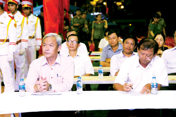 Tối 31-5, Ủy viên Trung ương Đảng, Bí thư Tỉnh ủy, Chủ tịch HĐND tỉnh Nguyễn Phú Cường (bìa trái) tổng duyệt chương trình lễ công bố thành lập TP.Long Khánh
