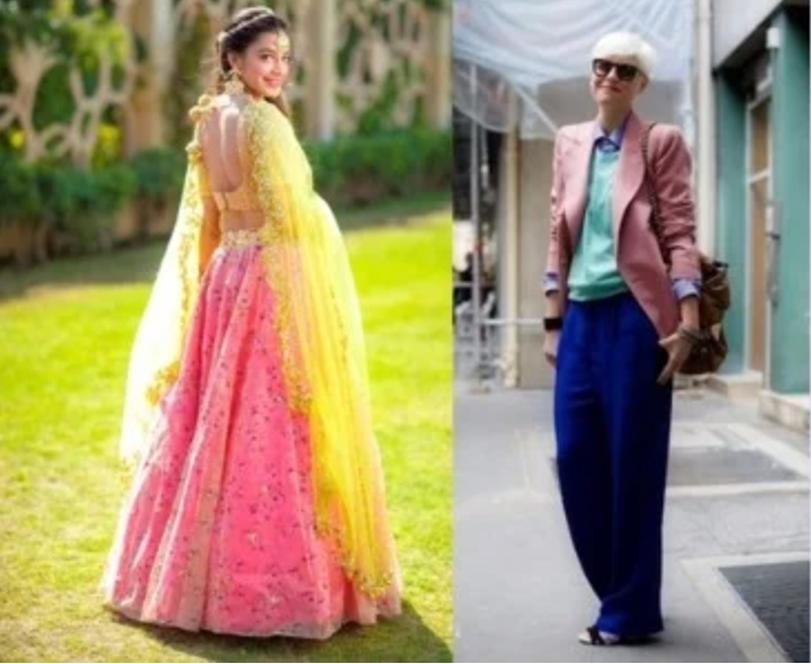 Màu hồng phấn kết hợp với màu chàm (indigo) cũng là một trong những cách mix đồ được nhiều bạn trẻ áp dụng hiện nay. Cách phối màu này dựa trên nguyên tắc rectangle colour scheme (mix màu theo bộ tứ). Khi đó, 4 màu sẽ tạo thành 1 hình chữ nhật và các bạn có thể thoải mái kết hợp các màu trong số 4 màu này với nhau.