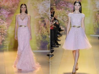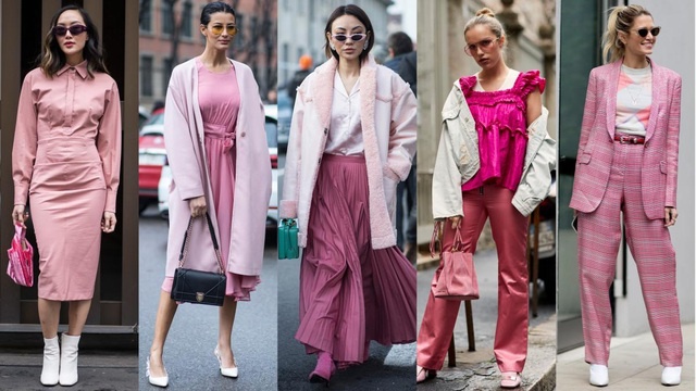 Bạn có thể thấy có nhiều mẫu trang phục được lấy ý tưởng từ màu hồng phấn. Nếu như so với những màu sắc trắng đen, hoặc tông nóng lạnh khác thì màu hồng phấn sẽ cần nhiều ý tưởng sáng tạo hơn vì đây không phải là màu sắc ai cũng có thể mặc được.