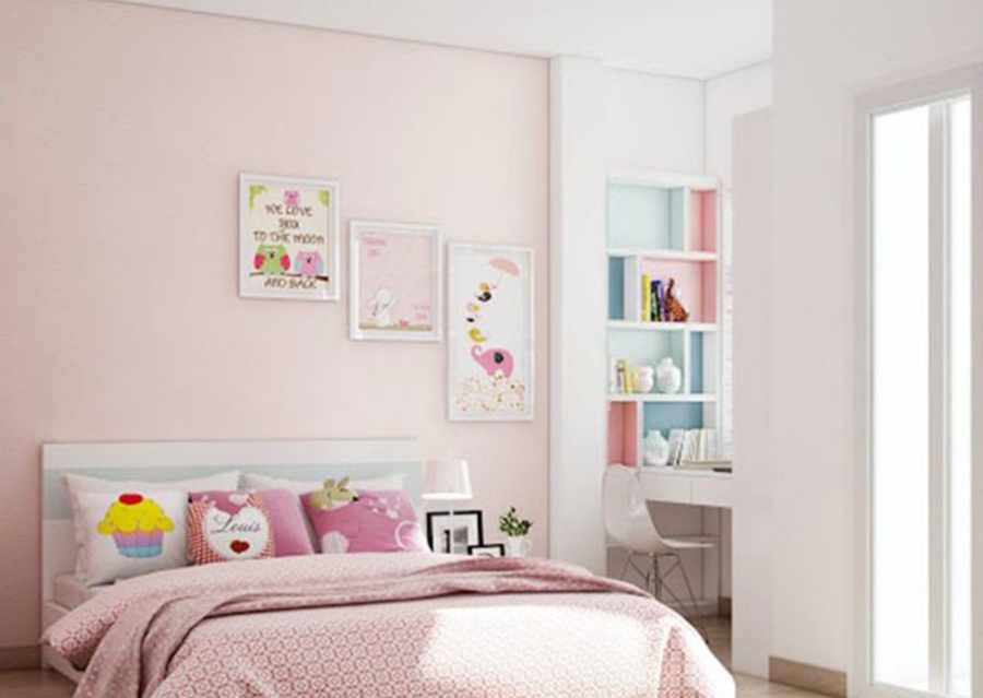 Màu hồng phấn cũng được rất nhiều các cặp vợ chồng mới cưới lựa chọn khi mới dọn về sống chung. Và chắc chắn, đây cũng là gam màu yêu thích của các bé gái. Bên cạnh đó, bạn cũng có thể tạo ấn tượng cho căn phòng của mình bằng cách kết hợp cùng sơn màu trắng hoặc màu kem, 2 gam màu này sẽ mang đến cho bạn sự tao nhã và vui vẻ.