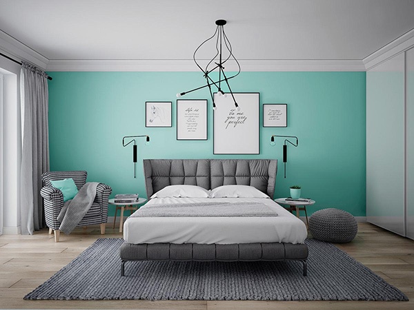 Bạn hoàn toàn có thể kết hợp màu sắc này ở cả không gian phòng ngủ và không gian phòng khách.