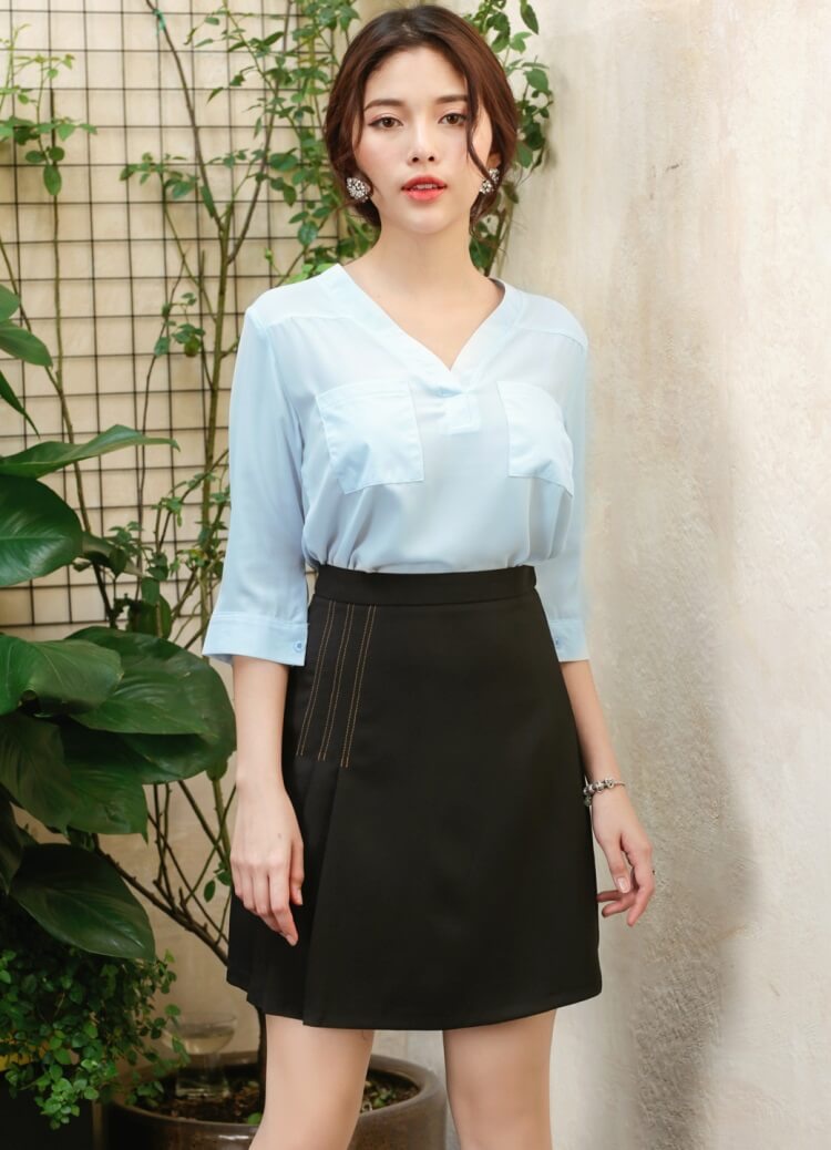 Song song đó, màu nâu còn cực tôn da. Cho nên, khi bạn mix 1 chiếc chân váy màu nâu với 1 chiếc áo màu xanh ngọc sẽ giúp các nàng thay đổi ngay định kiến với gam màu này đó.