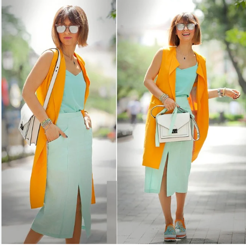 Bên cạnh đó, bạn cũng có thể mix ngoài 1 chiếc chân váy màu vàng cùng áo màu xanh ngọc hay set đồ chân vát màu anh ngọc mix cùng áo khoác hoặc áo hai dây, áo phông màu vàng để tạo nên nét cá tính và độc đáo riêng.