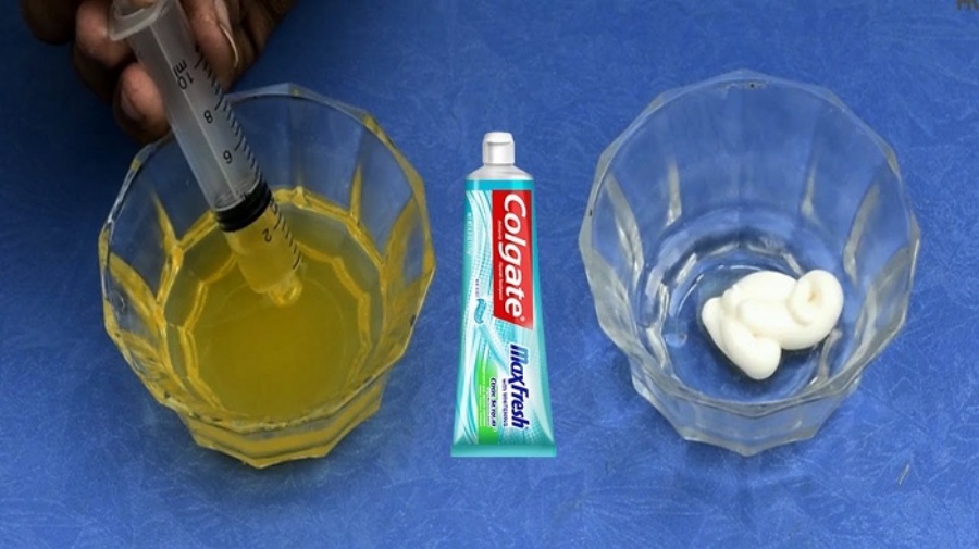 Một trong những mẹo nhận biết có thai ngay tại nhà mà bạn có thể thử đó là dùng kem đánh răng. Đầu tiên, bạn lấy 1 lượng nước tiểu vào buổi sáng cho vào lọ rồi tiến hành cho 1 ít kem đánh răng vào. Nếu như kem đánh răng bị sủi bọt và chuyển sang màu xanh dương thì xin chúc mừng chắc chắn bạn đã có thai rồi đấy.